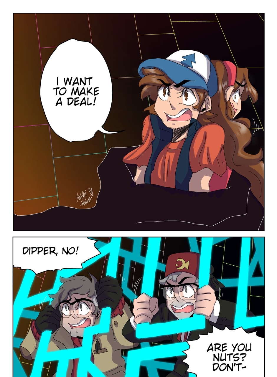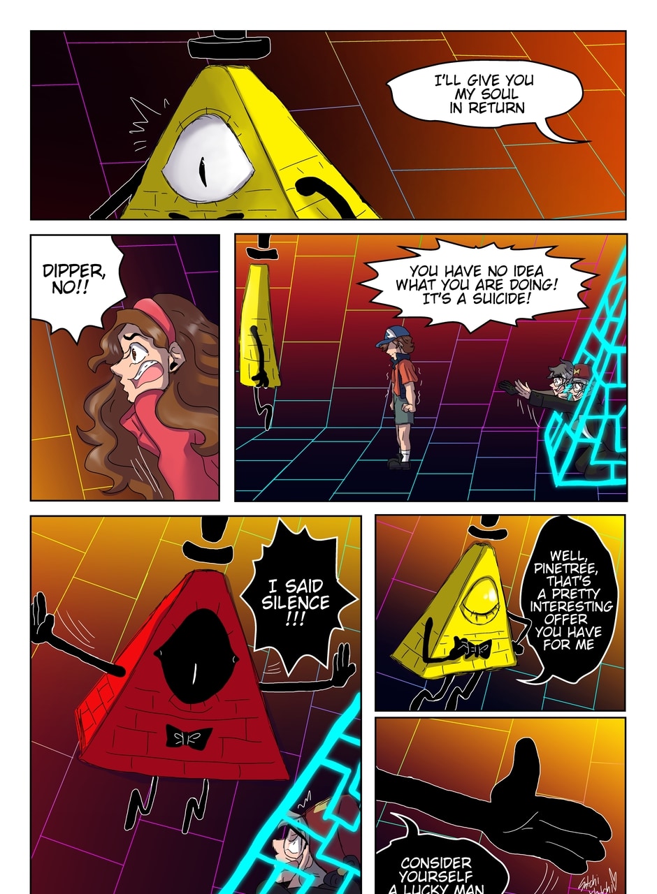 Gravity Falls AU: What if Dipper was the one who made a deal with Bill during Weirdmageddon? Well, all he asks for is to stop the apocalypse and return Gravity Falls to the normal and never hurt his family ever again. In return, Dipper offers him something that no one should ever offer to the demon....his soul.