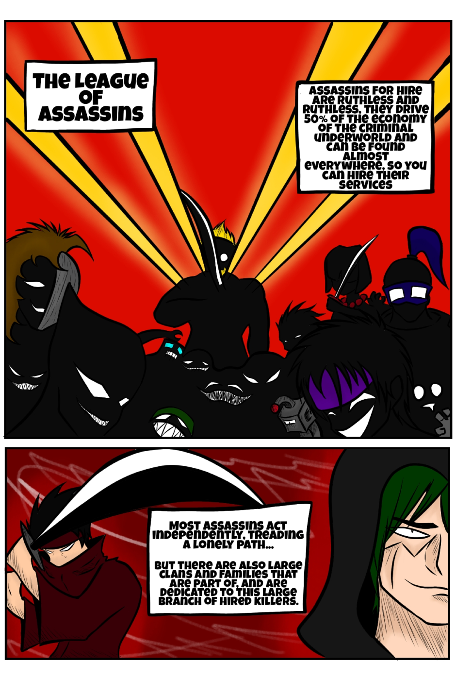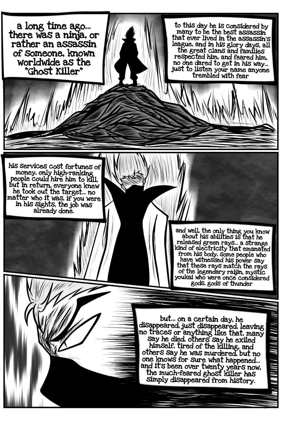 the plot follows in a world where assassins drive the economy of the criminal underworld, Gin is a ninja who uses his "incredible" skills to compete in the huge market of assassins for hire, using the code name Green ninja, along with Krobus, his faithful Youkai partner, the two live together in a small house, and are most concerned in life to have money to pay the monthly rent