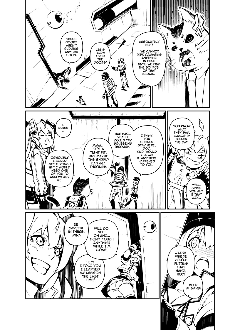 Gun+Blazer follows the adventures of The Scarlet Coyote, a freelance salvage & security group operating on a distant planet. (Read from left to right).