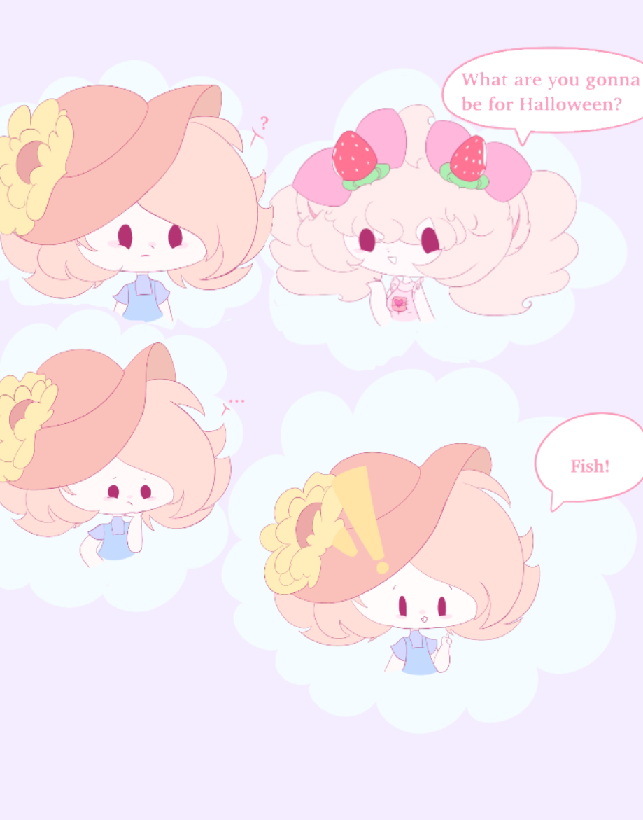 The answer to everything is Fish! Also omG THERe charccTER DESIGNS AND thE arT StylE IS SO CUTE AAA