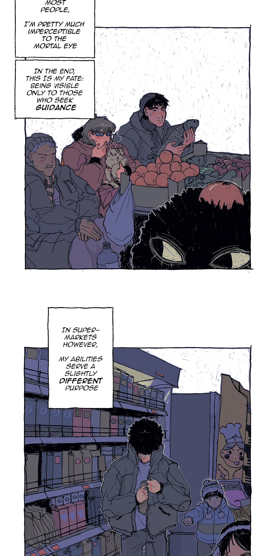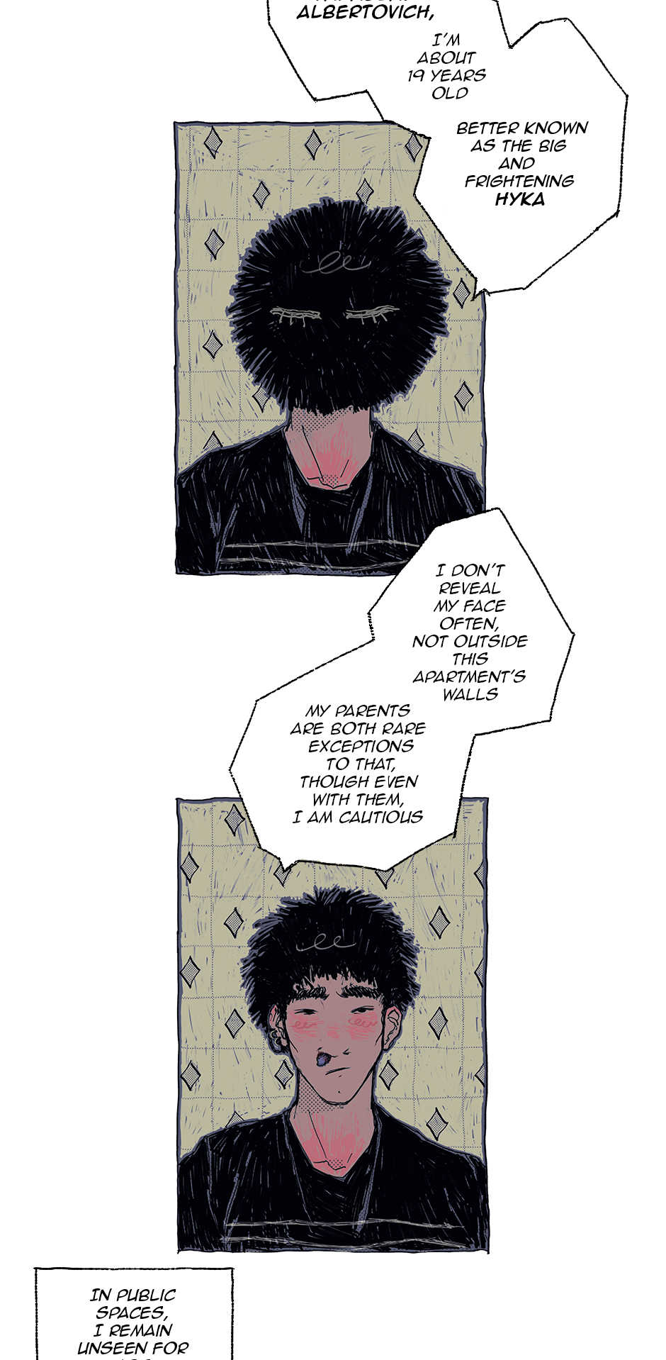 Slava is a 19 y.o living in a seemingly regular city located in the middle of nowhere. It's isolated because it has been flooded with demons (the Nechest) for centuries. Slava is half Nechest, half human, and because of tensions between the two kinds, he hasn't gotten to know the Nechest world properly. Though in his demon form (the Hyka) he's been interacting with humans for most of his life, making this his beloved hobby. His life as he knew it quickly changes though, as he finds out that more and more nechest in his home city are disappearing…