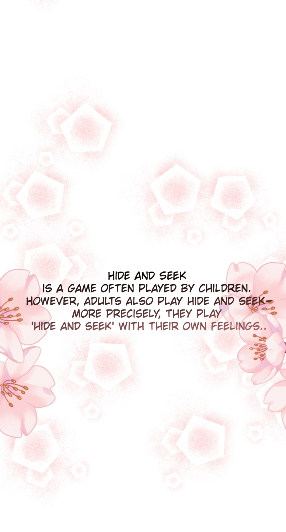 The game of hide and seek is usually related with children's games, but did you know that adults also often play hide and seek with their "feelings"? Priska Huang has to hide her feelings for Charlie Lee, a young orthopedic doctor who has helped her, to maintain their friendship. The love she thought was one-sided, turns out it was actually reciprocated! She wants to stop her love. However, without her realizing it, someone had slipped into her heart and changed her life.