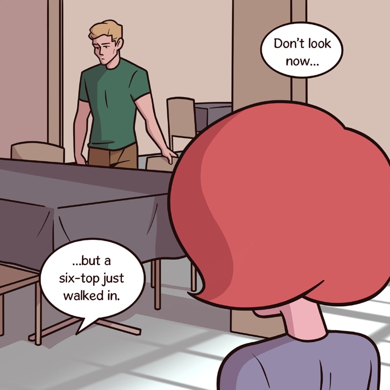 A six-top is a table to seat six people. It's restaurant lingo.