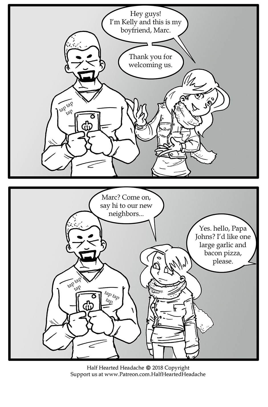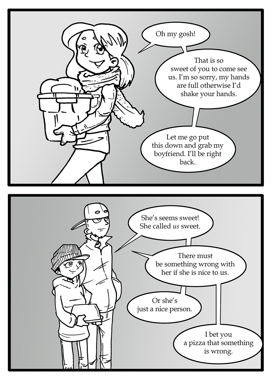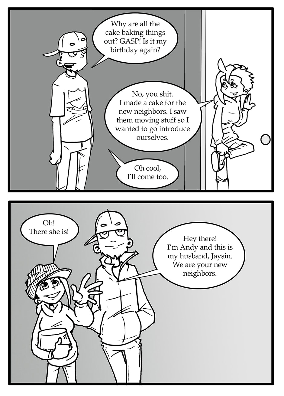 ARC 2 of Half Hearted Headache follows a slice of life story about unlikely friends in the small city town of Elgin, IL. Following the day to day lives of people, their interests, and their relationships. Plus a talking cat... and a ghost... and mysteries galore!