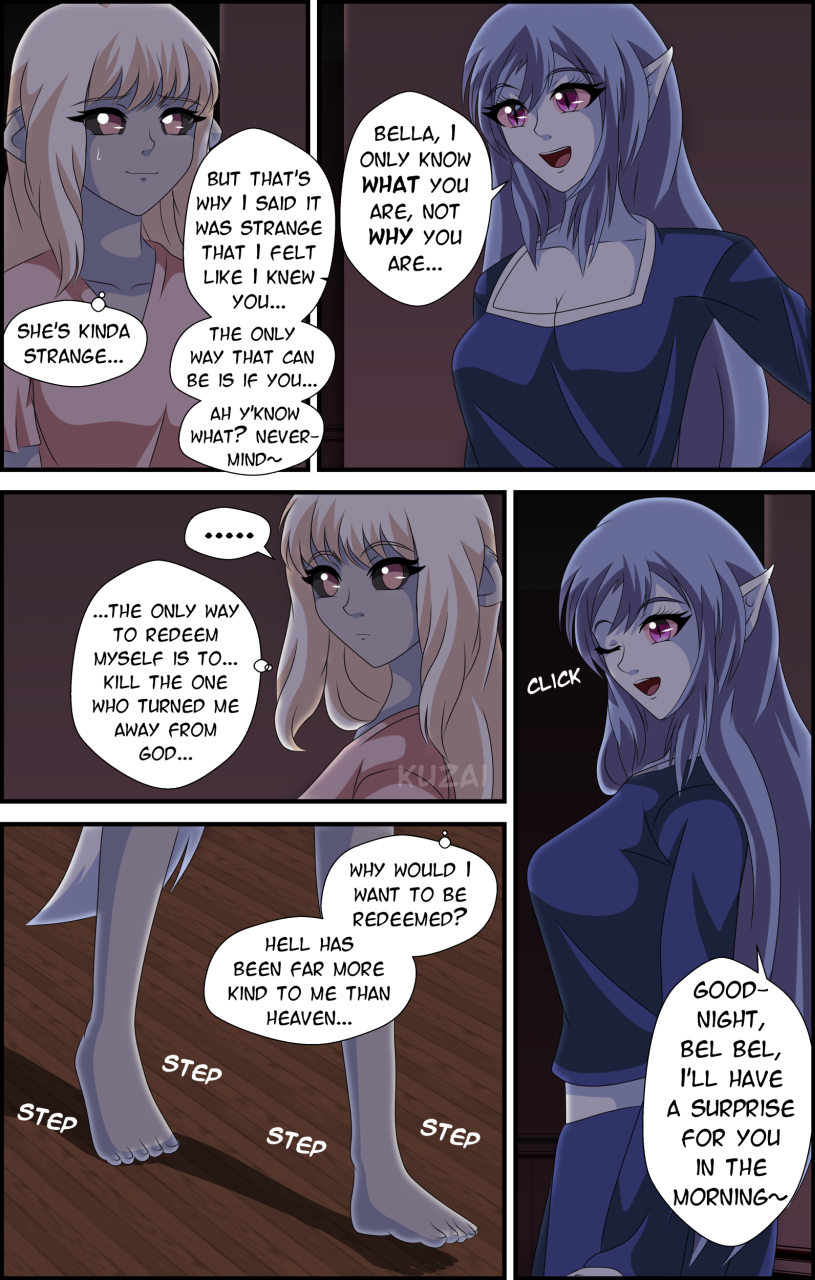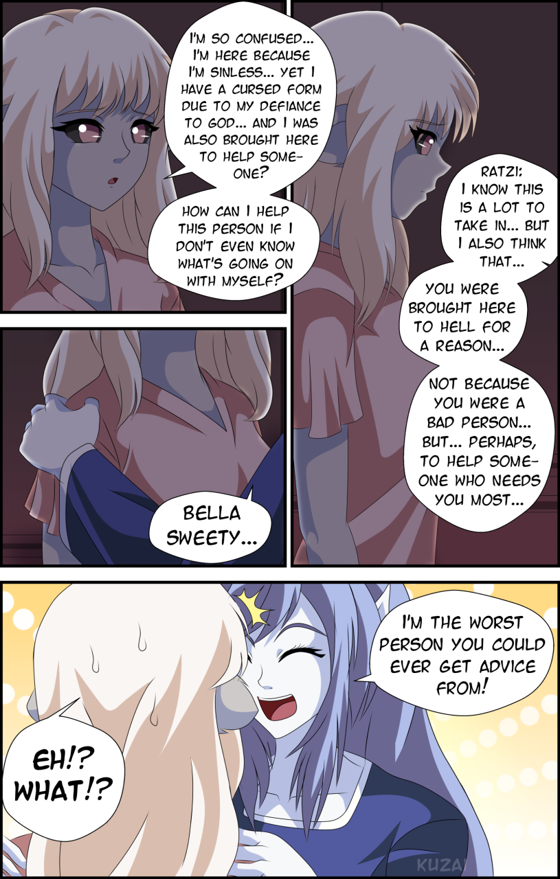 Join the characters you know and love as they meet two new "demons", a sinless demon named Bel Bel who grew up in a cult village that has turned her away from God yet has no reason to be in hell, but is, and an angel named Ratzi who is so full of sin that many question why she's even an angel in the first place!