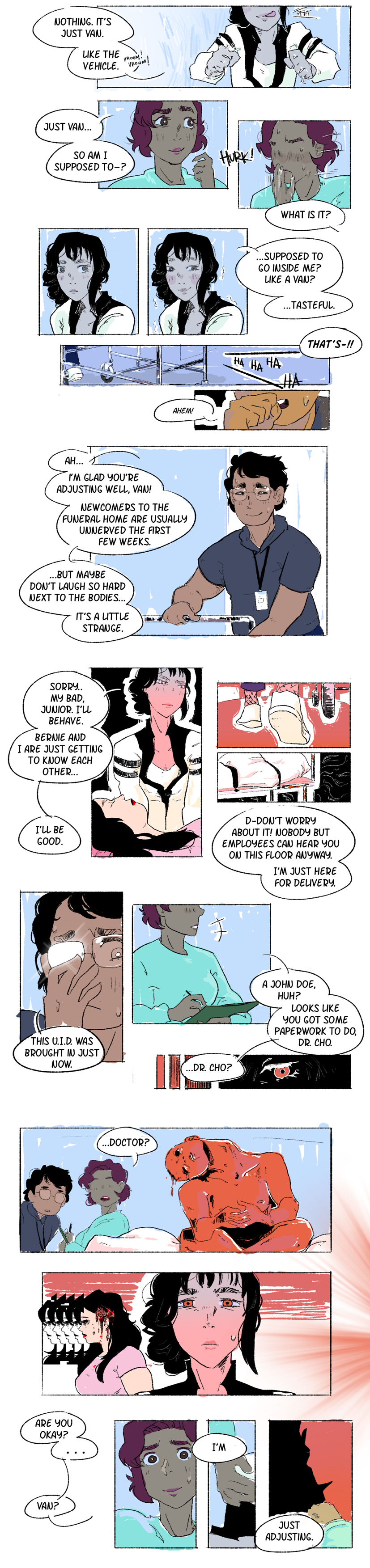 Crash-Bang-Smack'd by circumstance, the mortuary beautician Bernie meets the funeral director's daughter (and now her boss!) Van. It's love at first sight, but it seems like Van is seeing things other than her soulmate.