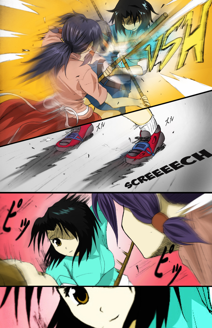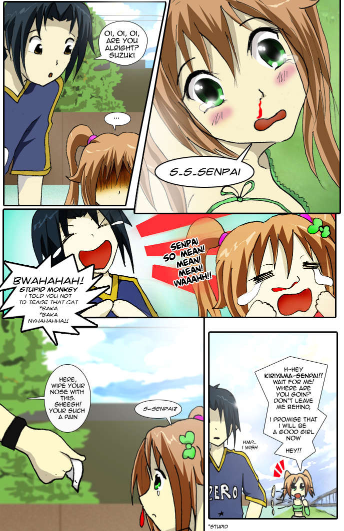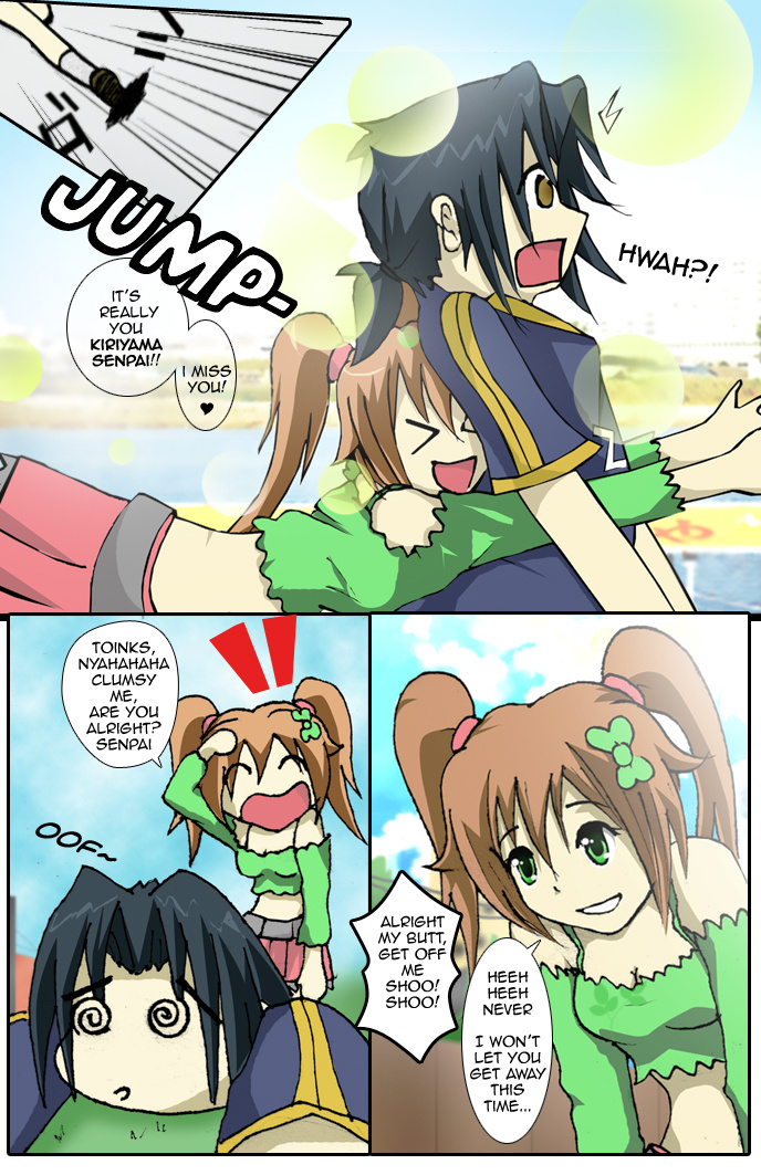 Tagging along are the child-minded Kayla Suzuki, the bokken-kendo practicing Nina Kazumi, and his reckless childhood friend, Ryu Hamano.