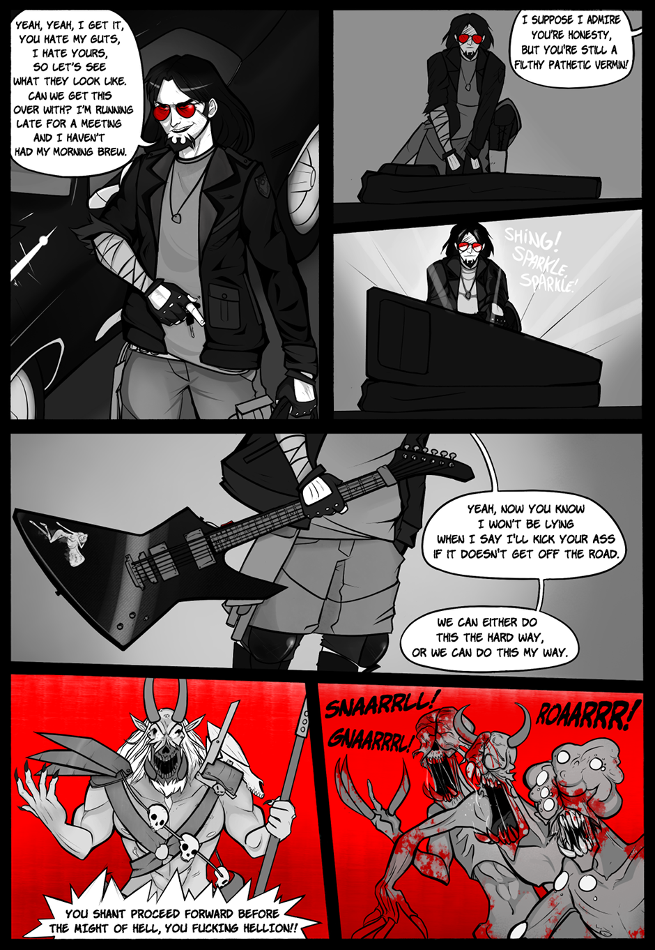 The impending apocalypse is here. Demons from the hell attack a nearby bridge that leads to the city of San Haven. Citizens run in fear, law enforcement retreats due to the overwhelming odds, all cower in fear. Except for one man, and he hasn't had his coffee yet.