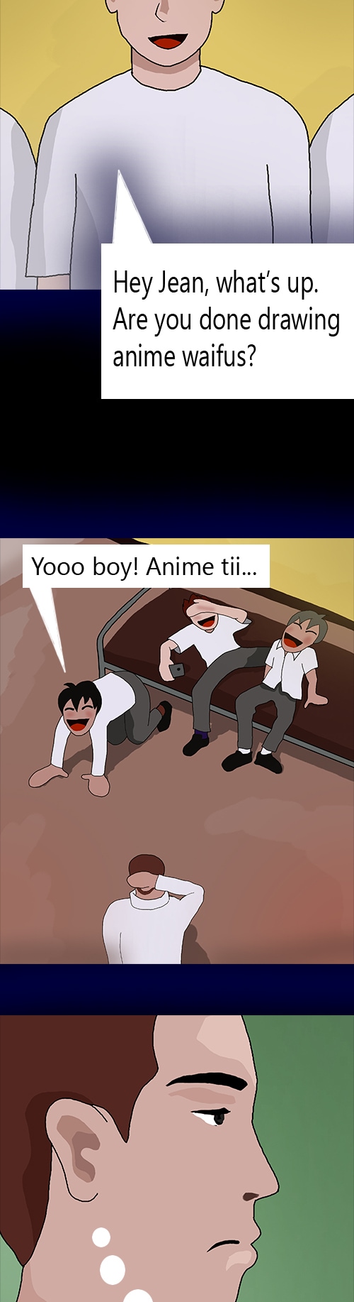 A teenage named Jean is a normal average high school boy. Although he is smart and talented in art, he has struggles when it comes to anything social. This comic will embark us on a story of Jean's romantic stories as he goes through high school. Enjoy!