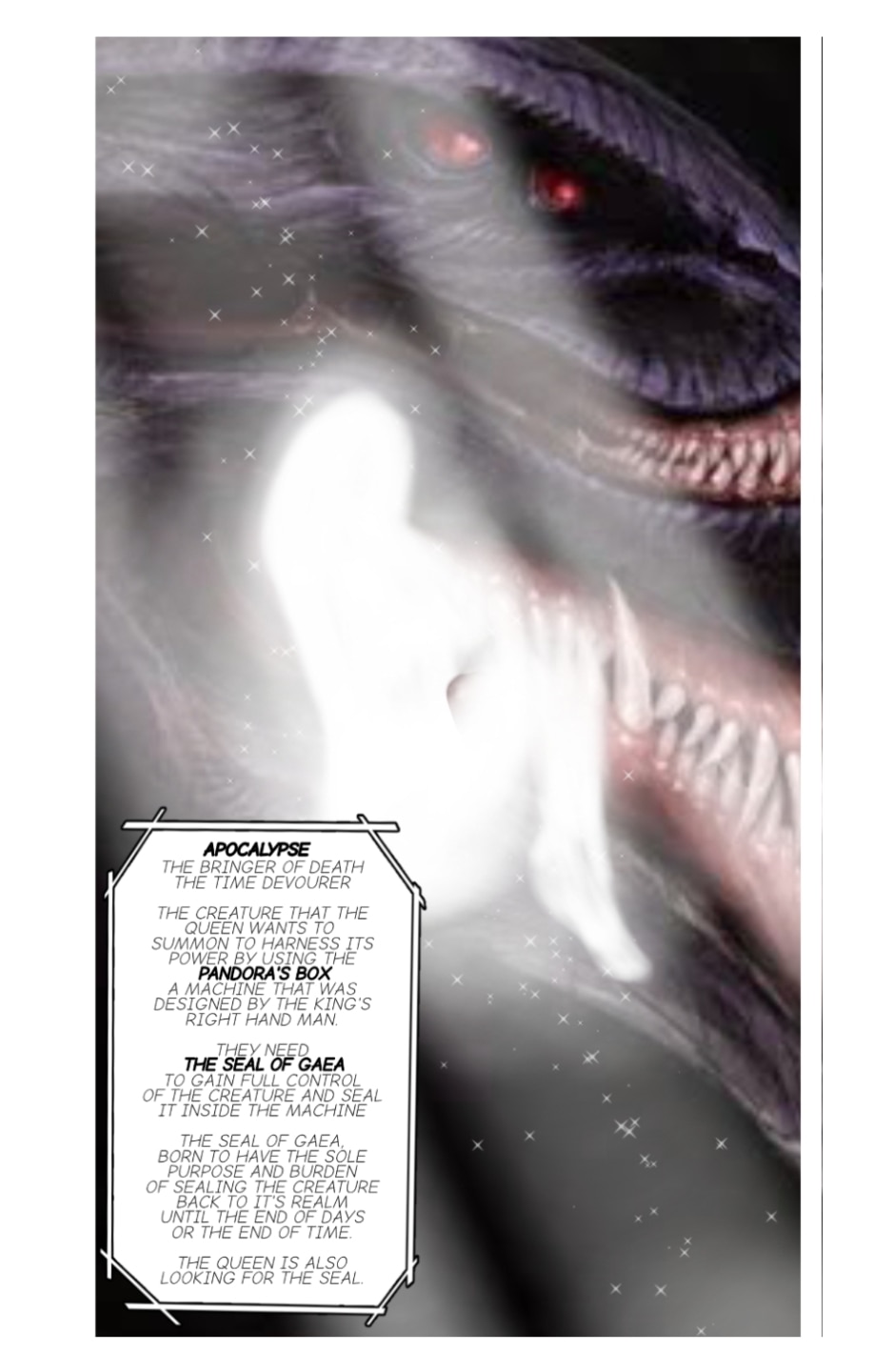 A story of adventure of Erebus and his comrades in finding the Fragment of Fate, a piece of the shattered body pieces of Kronos The God Of Time. Erebus being lost in darkness from the death of his father will find his light when he meets the mysterious girl named Eliana.