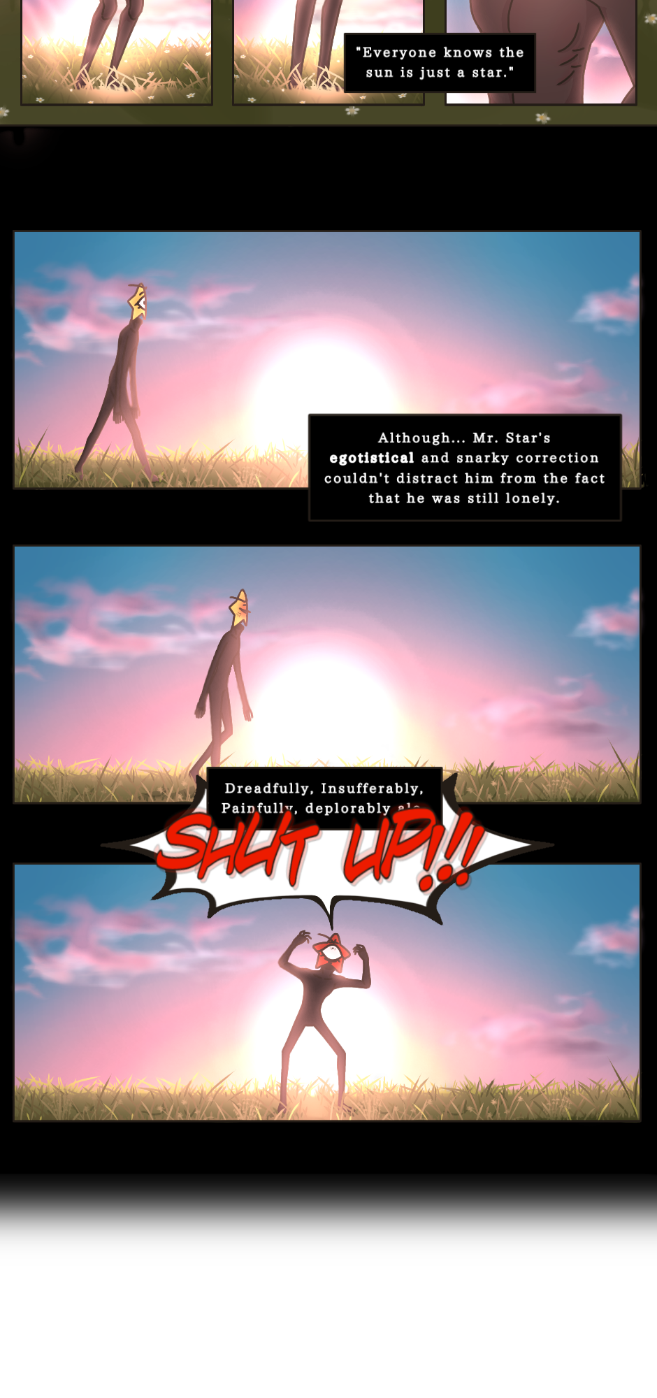 Mr. Star didn't care much for it. Company, friends, camaraderie. Sure he was alone. Dreadfully, indubitably, atrociously, alone. But he has the voice in his head! Why would he need anyone else?