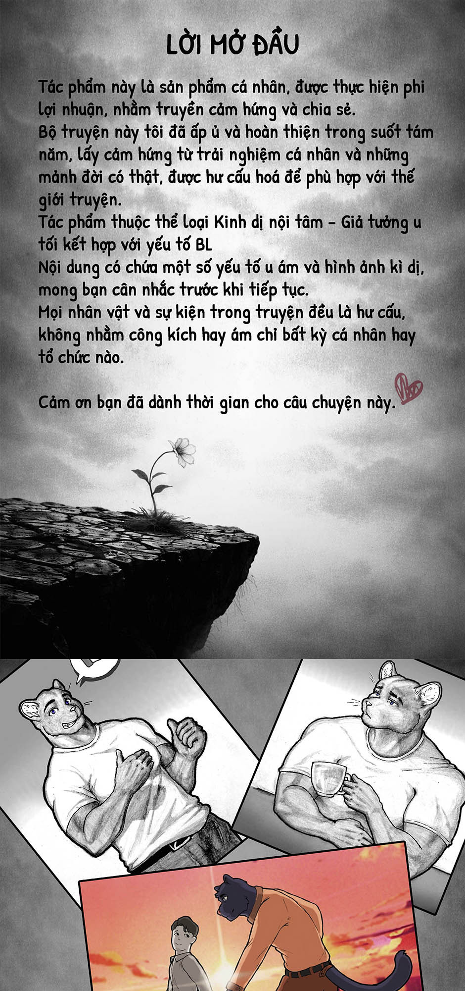 Hoa Nở Bên Bờ Vực là một bộ truyện tranh gồm ba phần liên kết với nhau. Lấy bối cảnh trong một xã hội hư cấu từ những năm 1960 đến 1990, bị chia rẽ bởi chiến tranh và định kiến ​​sâu sắc, câu chuyện khắc họa cuộc sống của những người bị đẩy ra rìa xã hội. Thông qua nhiều mốc thời gian và góc nhìn khác nhau, tác phẩm khám phá các chủ đề về bản sắc, phân biệt đối xử, mất mát, sự chuộc lỗi và khát vọng bất diệt của con người về tình yêu và sự thấu hiểu. (Bản VN)