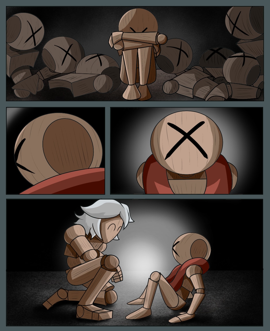 Jig and Dee are two little, wooden puppets, both abandoned and left to fend for themselves in a world that did not want them. Together, they look to find some tiny, precious thing that they can safely call "Home."