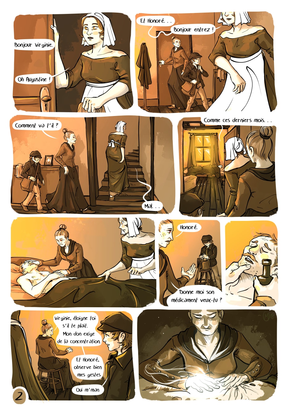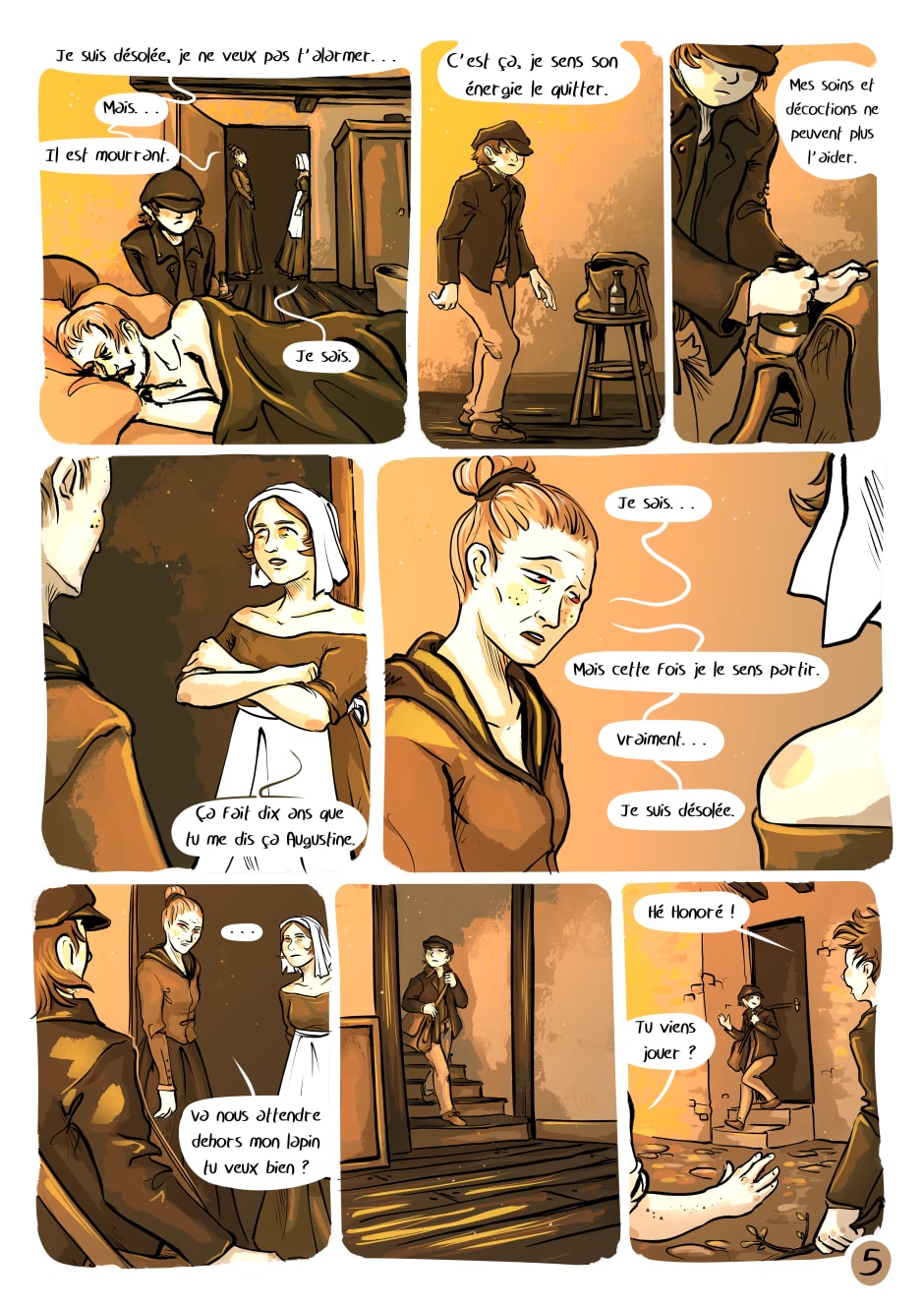 Seule, elle est contrainte de s'en occuper et appellera à l'aide son amie Augustine, guérisseuse du coin.