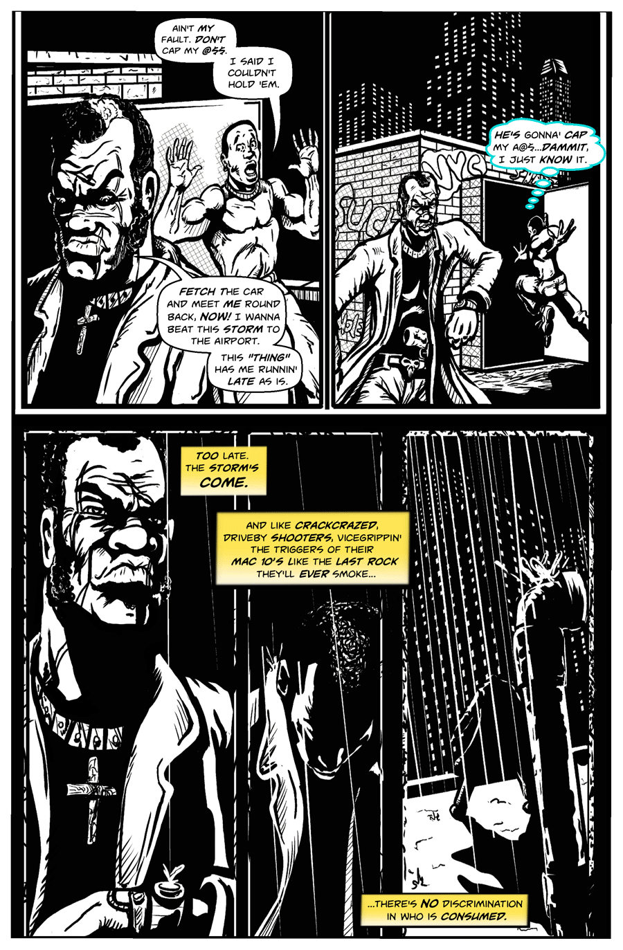 From beat cop and street dealer, to detective and crime boss, Joe Raijin and Pope Obote have been locked in a twenty year battle as arch enemies. For all Raijin’s efforts, he has only found frustration watching Pope’s Teflon ascension to kingpin and cultural icon. With only three weeks left before the detectives forced retirement due to cancer, Pope is about to achieve his greatest success – consolidation of the criminal underworld as “King of New York”. When Pope’s closest associates start turning up murdered, Raijin and his partner get closer than ever to bringing Pope down, but reality turns on its head as events and entities of supernatural origin impede their path. Confronted with the truth about the reality of crime in N.Y.C, they must pierce the heart of demonic darkness to defeat Pope, free an enslaved city and save their souls.