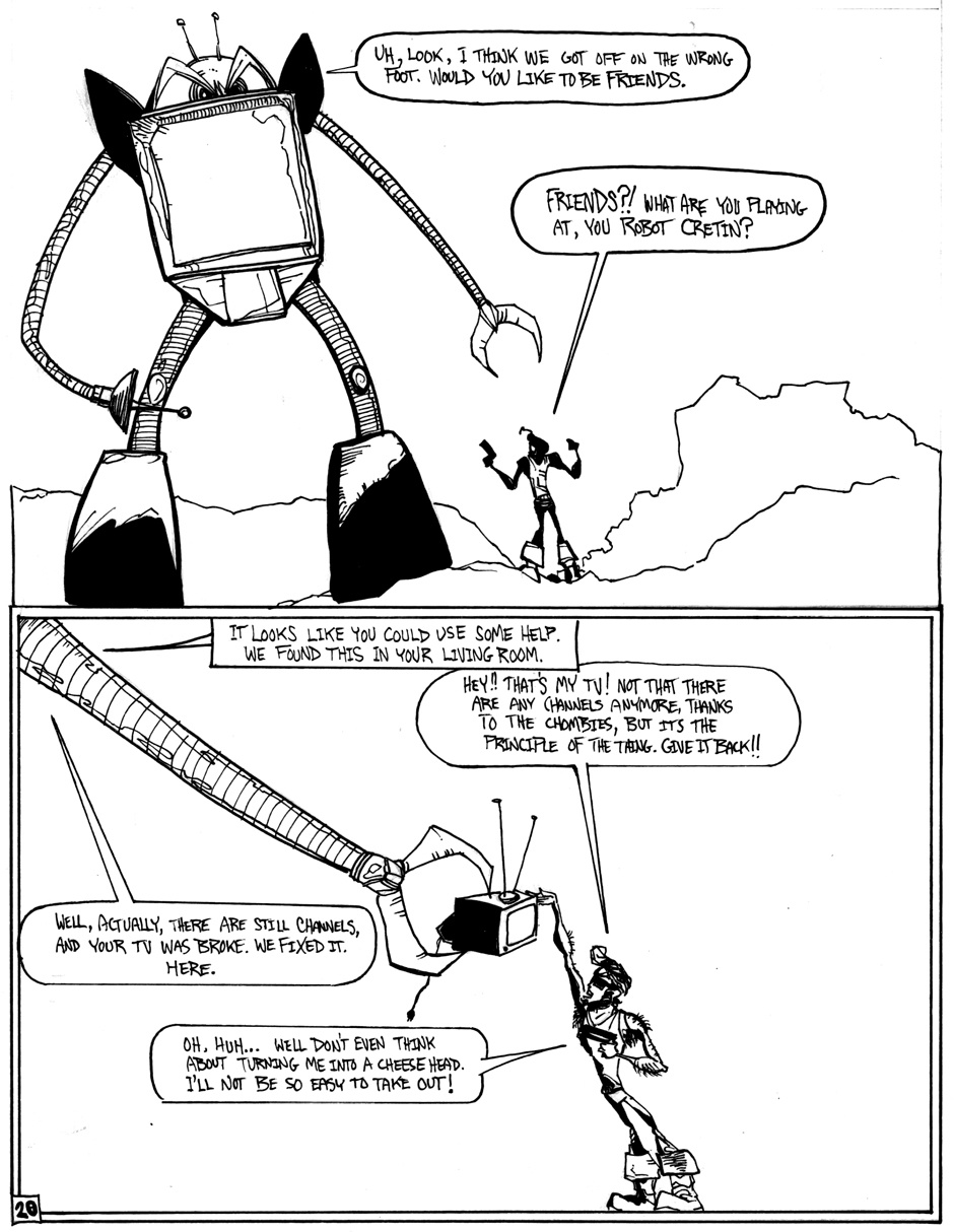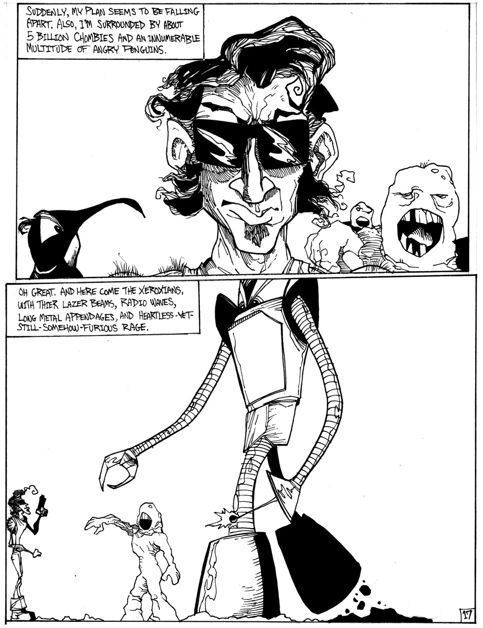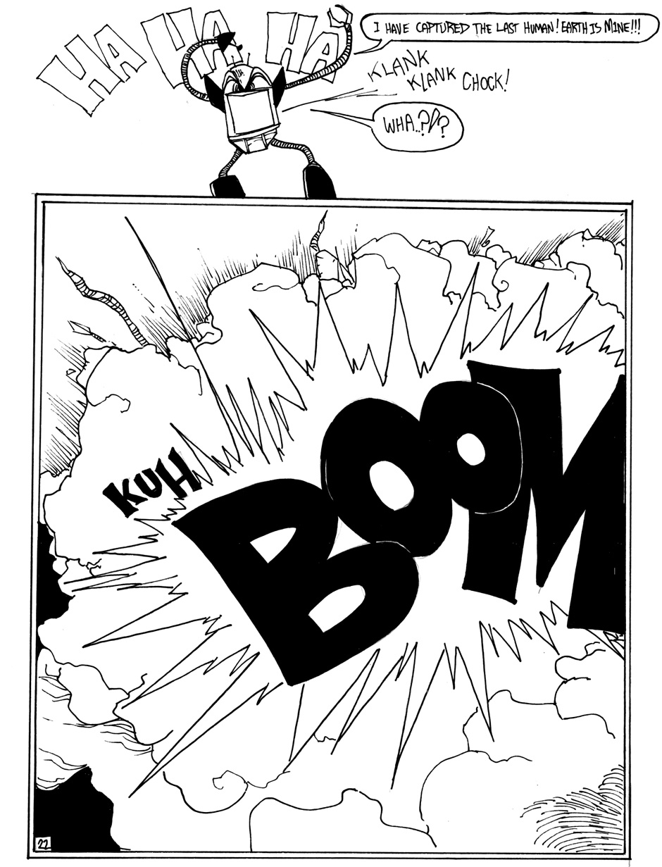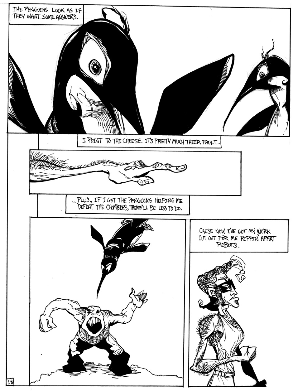 A story of good (sort of) triumphing over evil (definitely), featuring Hamm Sammitch, unlikely hero of a post-apocalyptic, cheddar-zombie infested world. And they aren't even the true menace orchestrating this dark, yet all-too-believable, probable future! Drawn in a 24-hour comic book challenge.