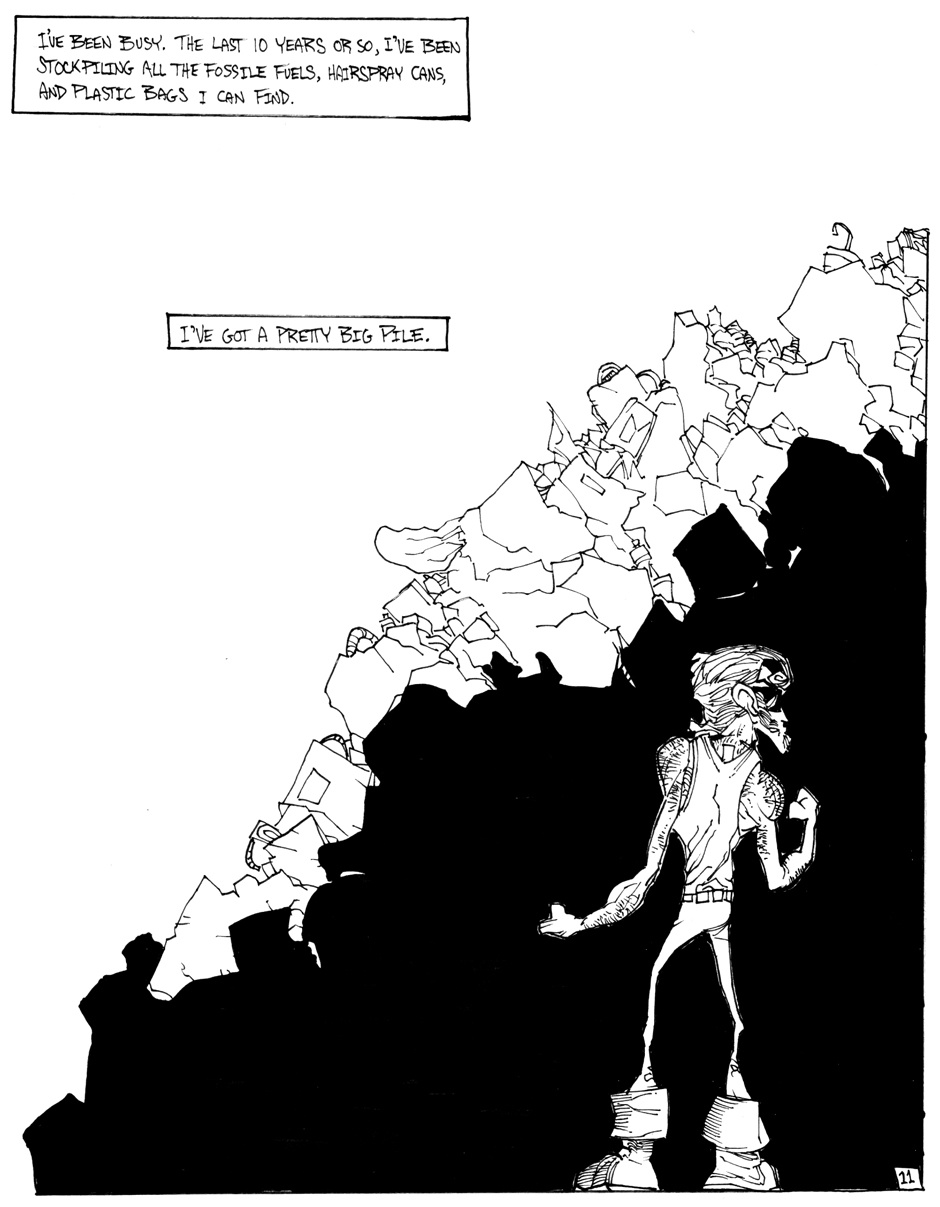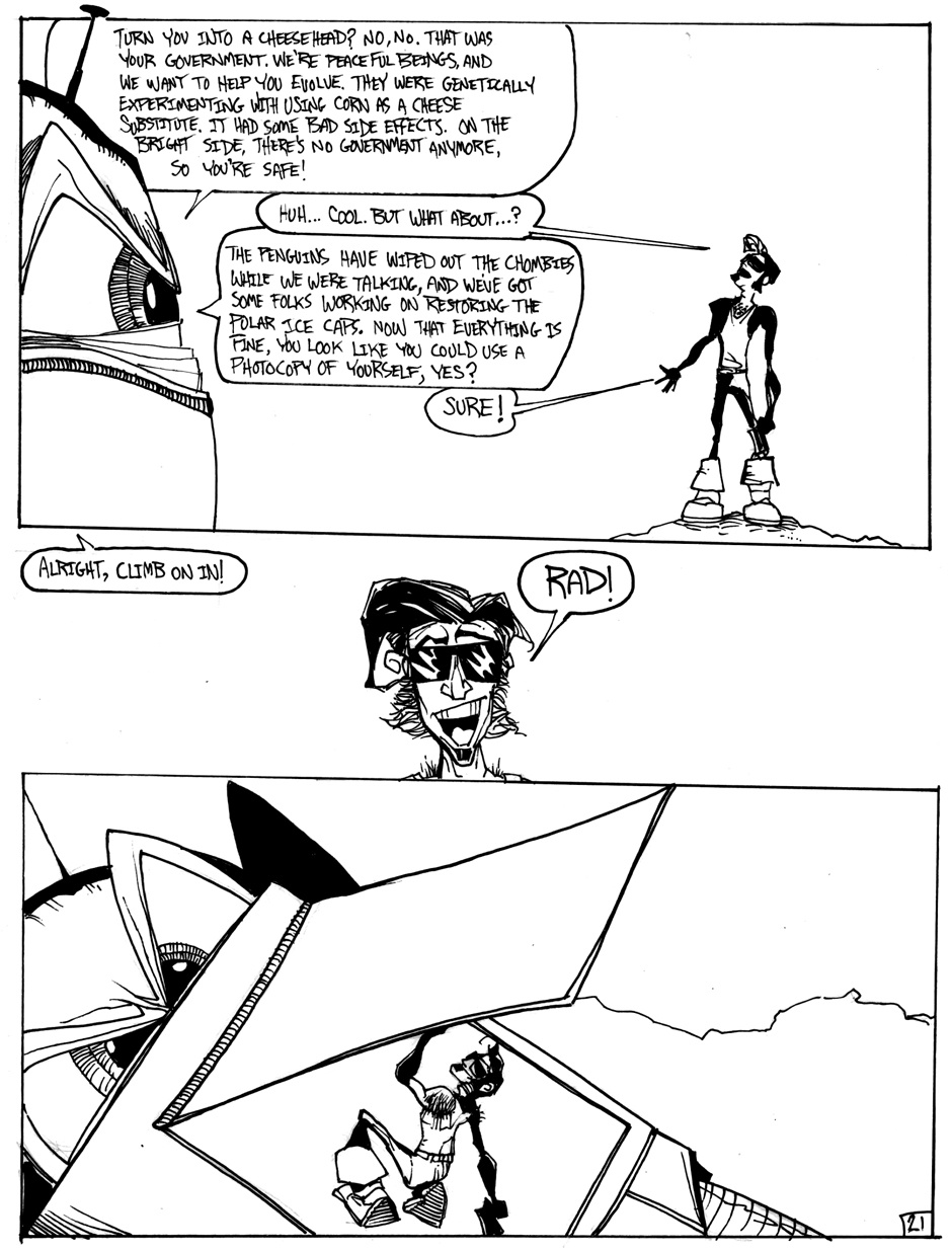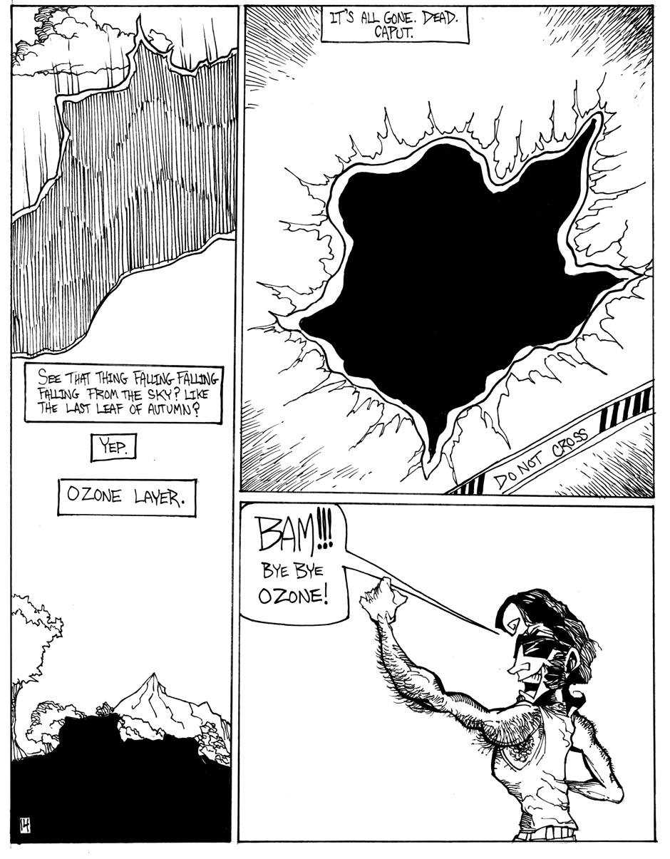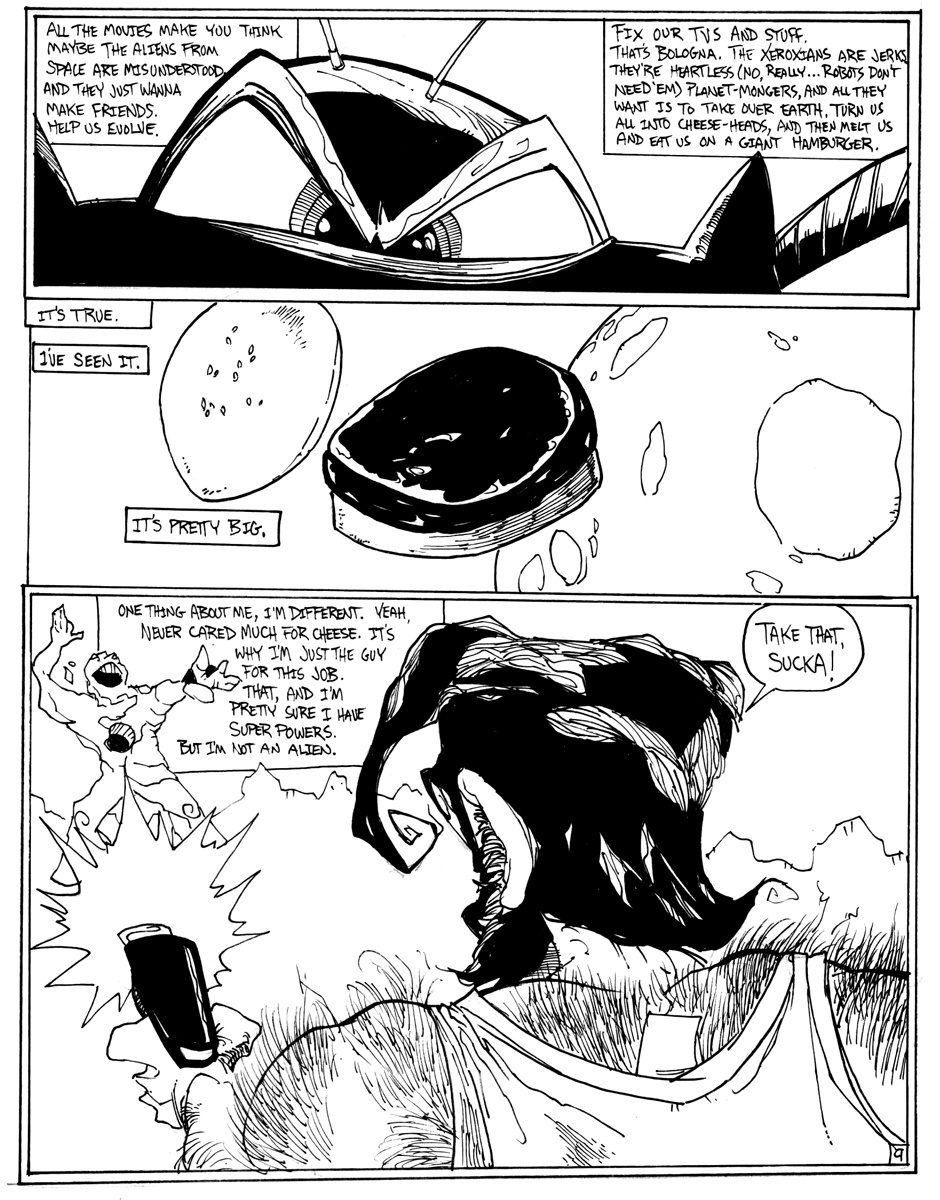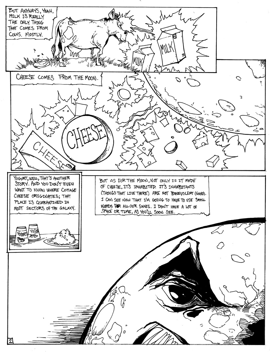 A story of good (sort of) triumphing over evil (definitely), featuring Hamm Sammitch, unlikely hero of a post-apocalyptic, cheddar-zombie infested world. And they aren't even the true menace orchestrating this dark, yet all-too-believable, probable future! Drawn in a 24-hour comic book challenge.