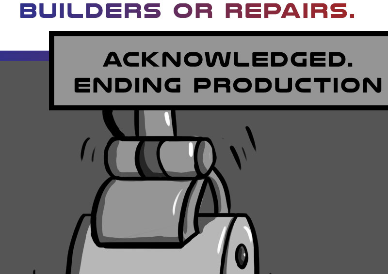 Humans began the war, but it continued with their creations. Construction of new bots had been halted until someone somehow, created Build-a. The build-bot was designed to create anything a society needs, and she wishes to create even more. Both sides wish to know her allegiance while she only wishes to build. Everyone keeps asking… Hue is she?
