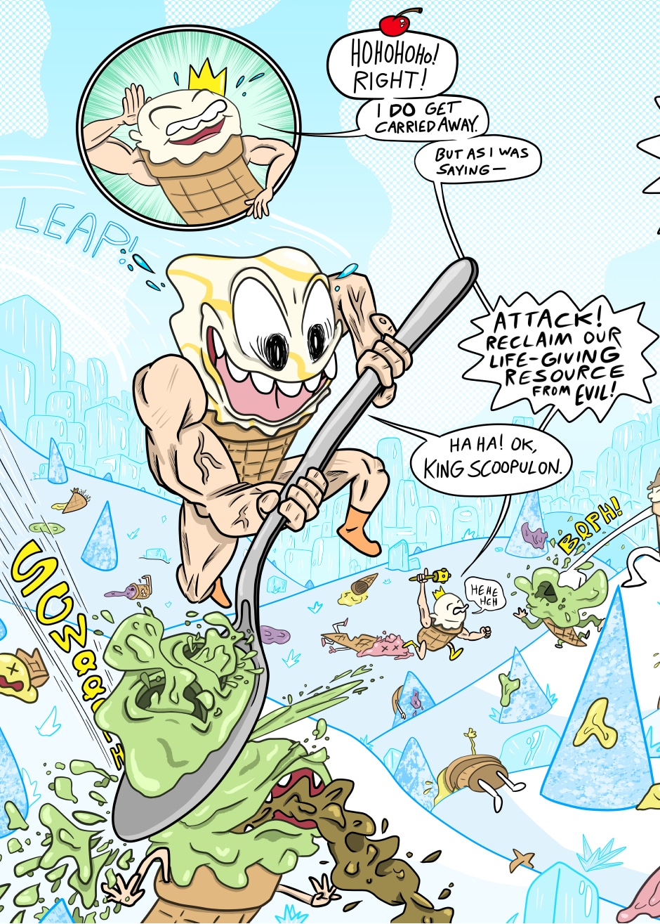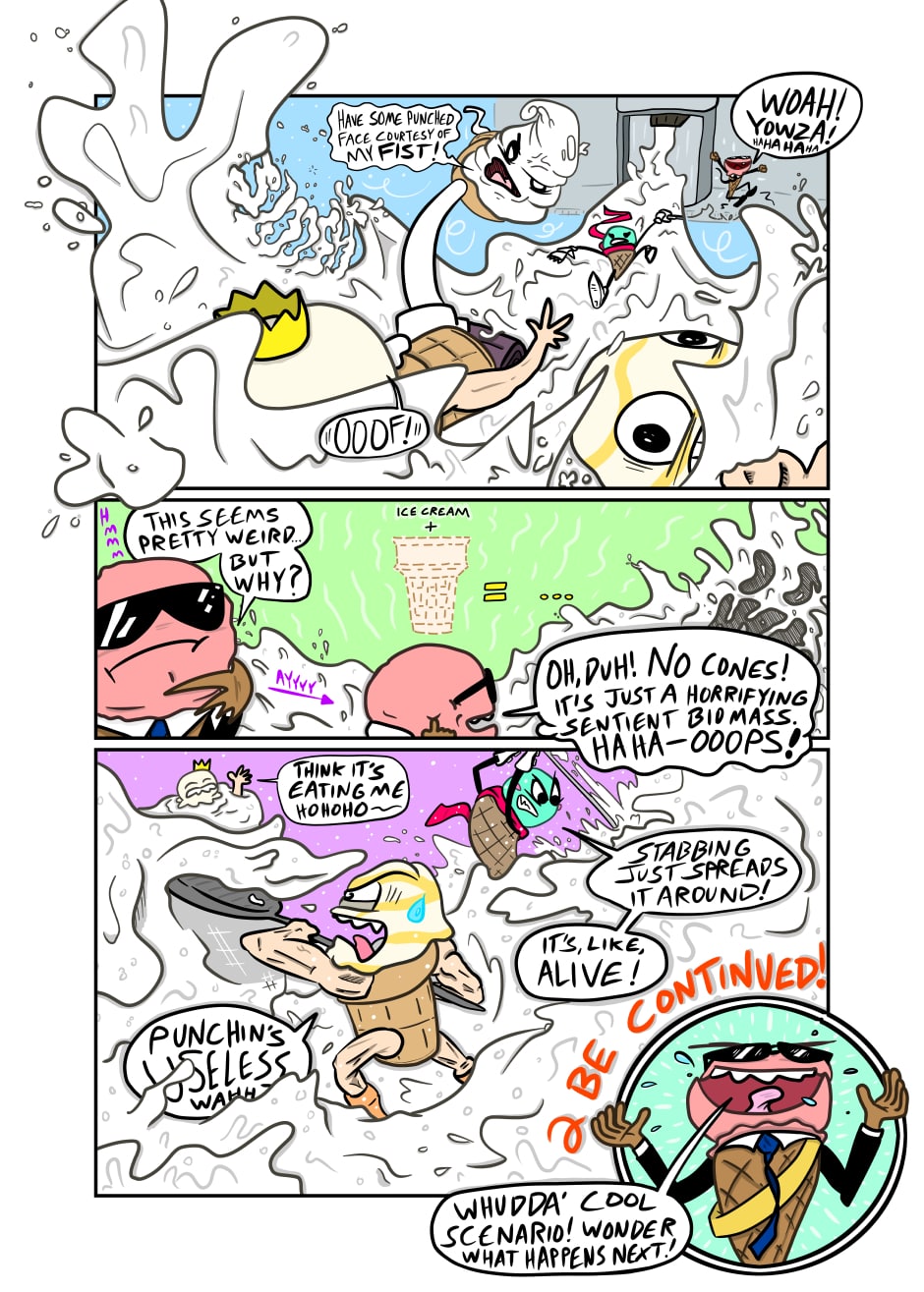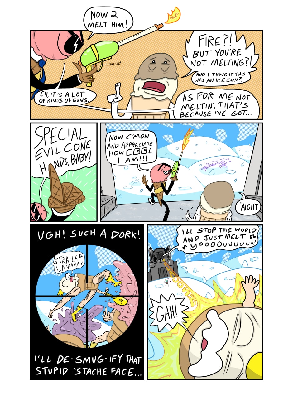 Humanoid ice cream from another realm warriorizes like it's going out of style in this mini epic meant to make kids buy action figures. Will I make a second chapter ever? Sure, if actual people want to read it!