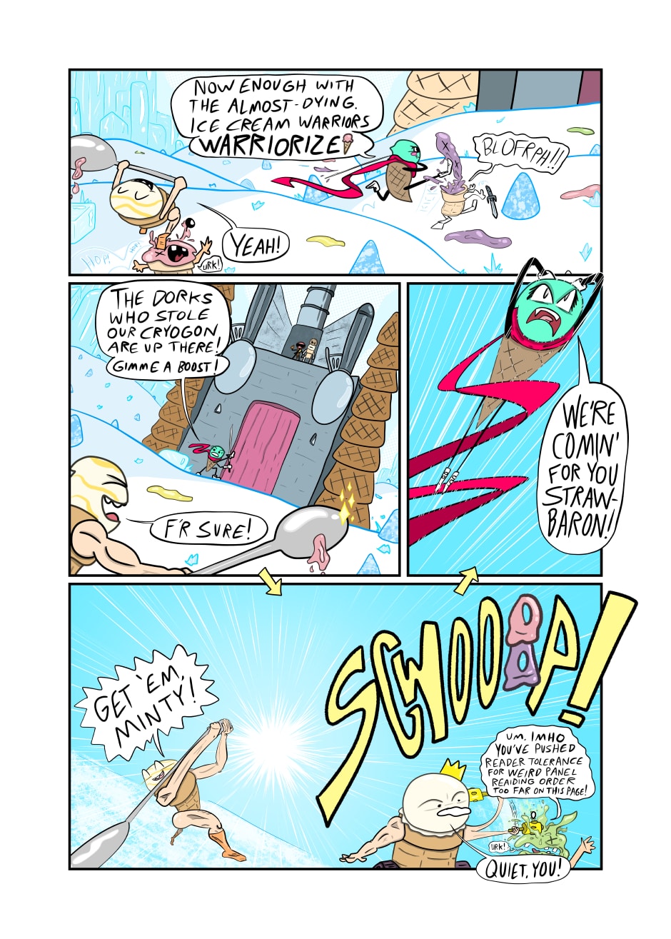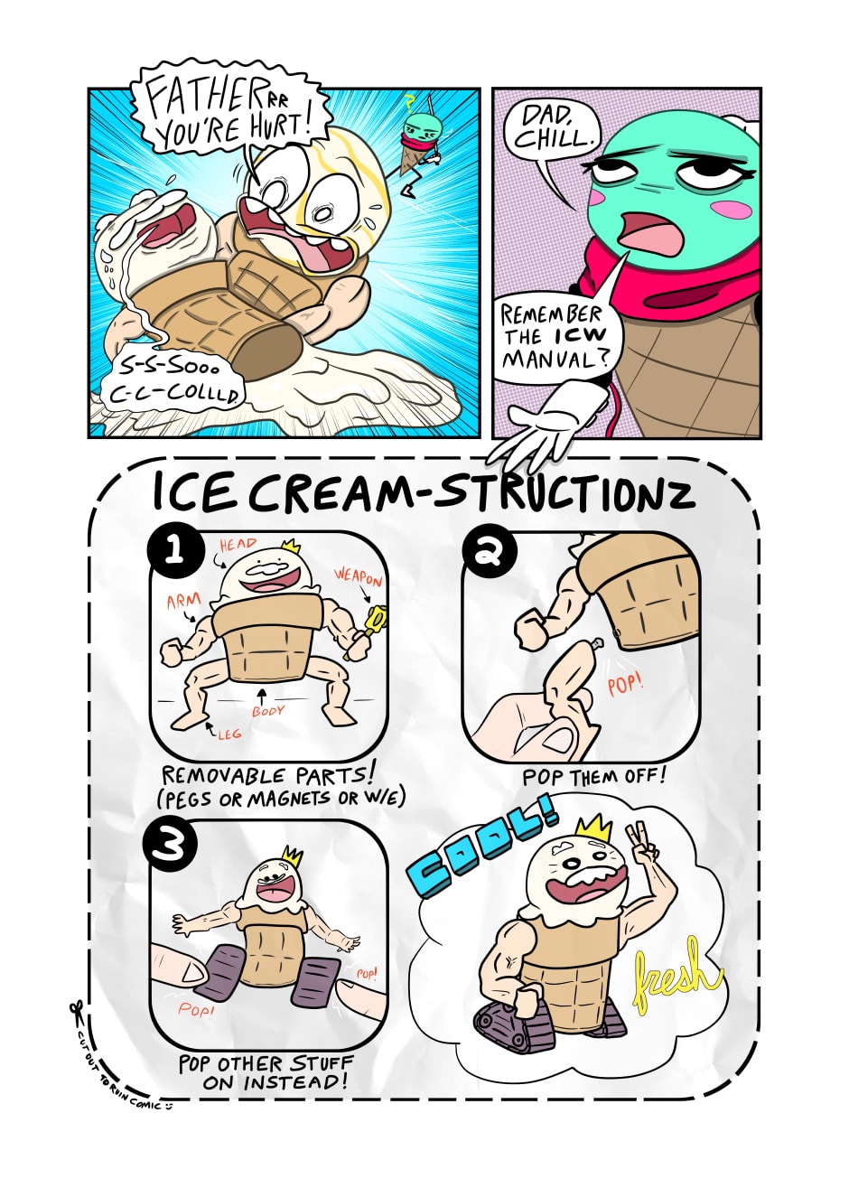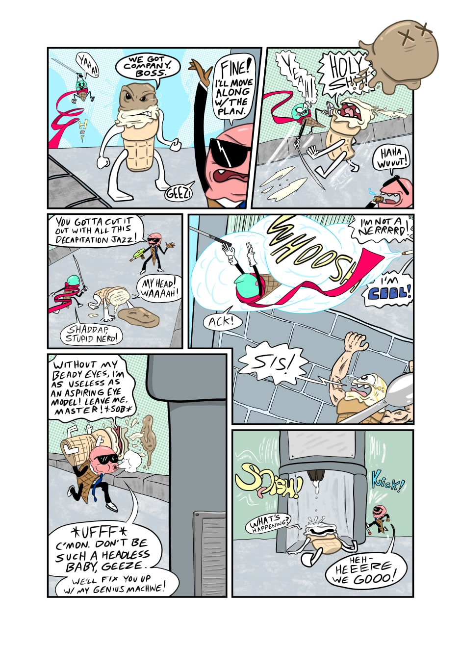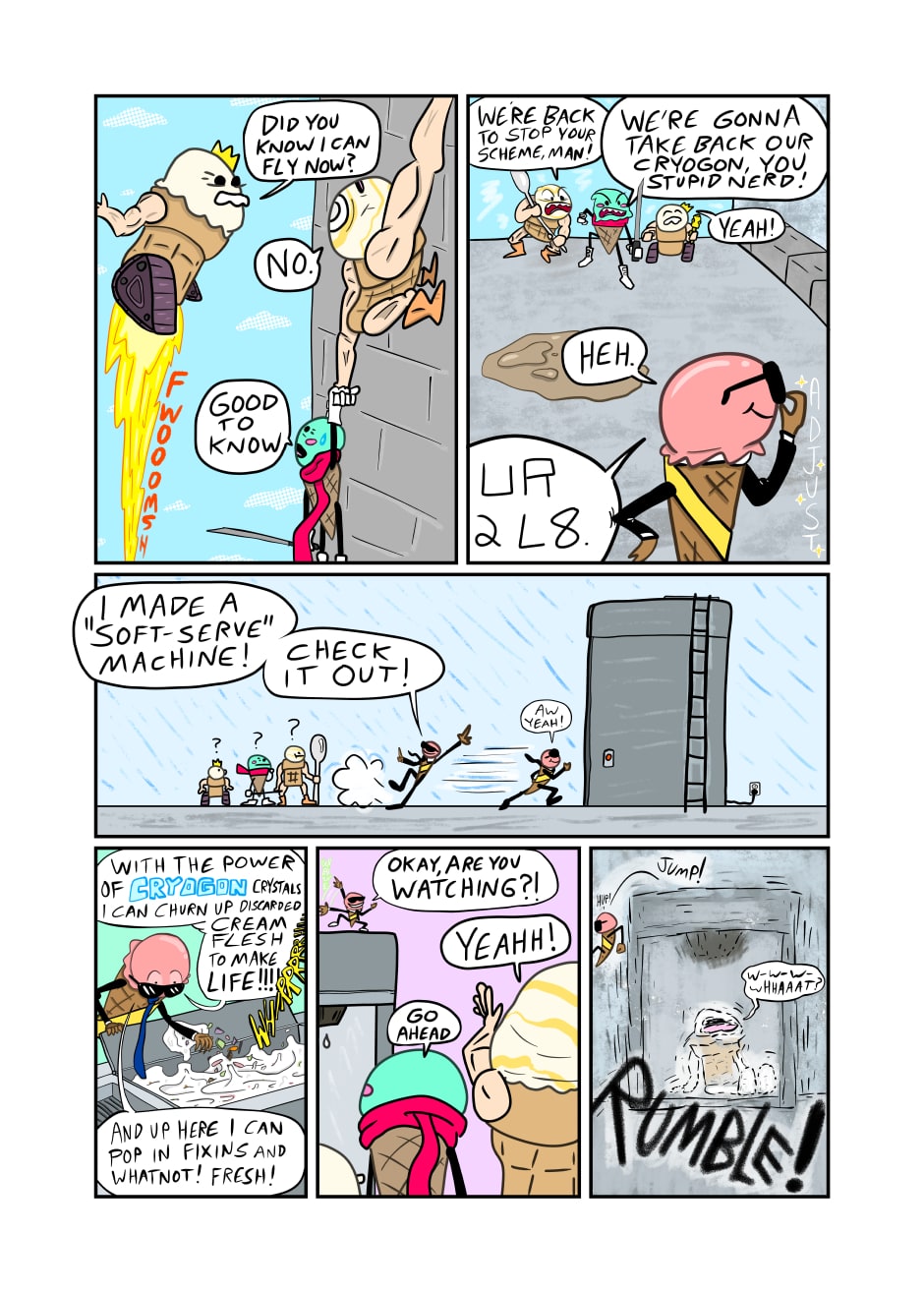 Humanoid ice cream from another realm warriorizes like it's going out of style in this mini epic meant to make kids buy action figures. Will I make a second chapter ever? Sure, if actual people want to read it!