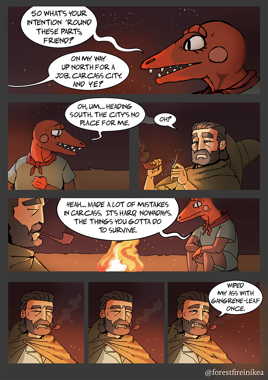 A poor woman on the road is met with a mysterious wanderer.