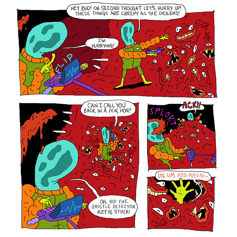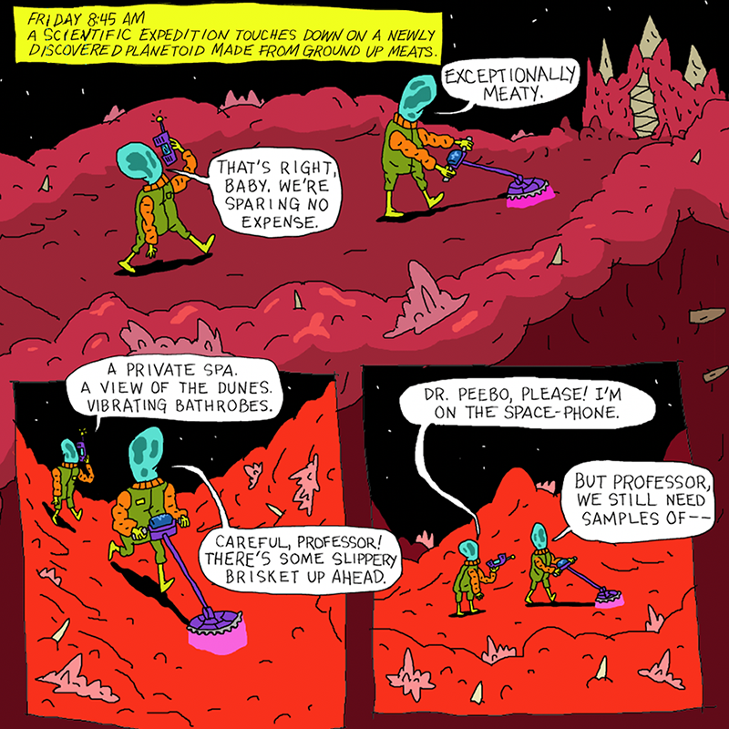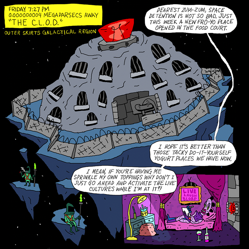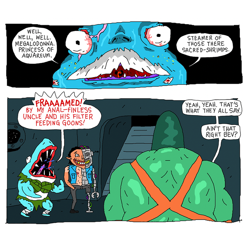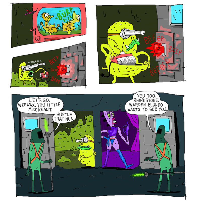 Warden Blundo offers Rhinestone, Weewax, Megaladonna, and Larry a get-out-of-jail-free card in exchange for picking up his crew's weekend missions, beginning with a search and rescue on the Meateor. What savory dangers await?