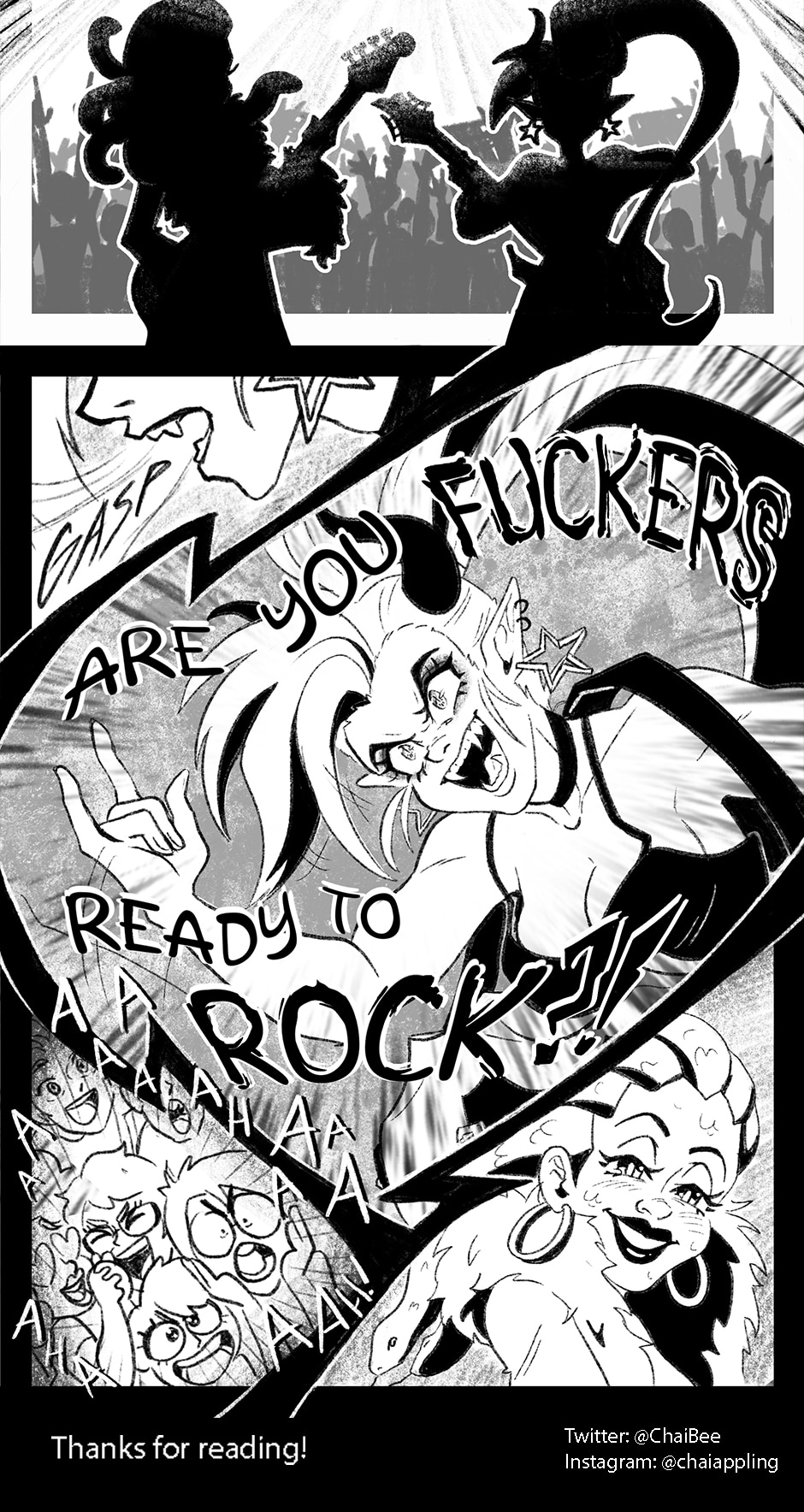 This comic is intended for young adult readers. There is swearing, mention and occasional use of alcohol and drugs, as well as sexual inuuendos and contexts. Please take note of these warnings before reading this comic.