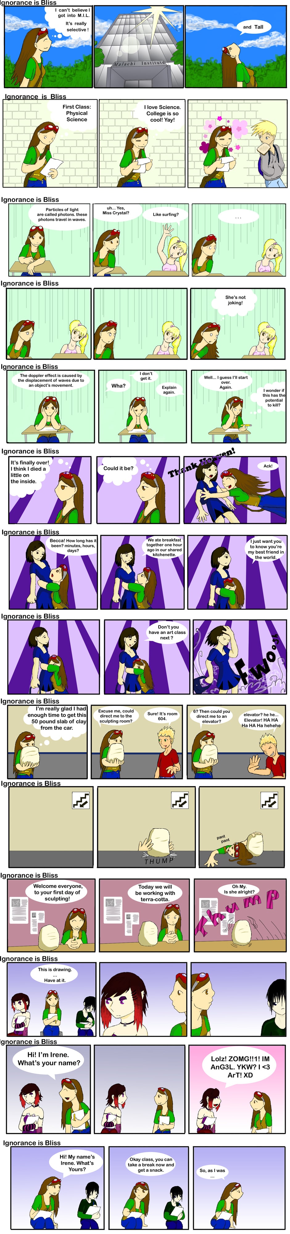 The first 39 strips of the series. Irene starts school and meets some new friends. Just testing the format with these original comics- If you'd like to read the newer (much better drawn) stuff check out my deviantart!