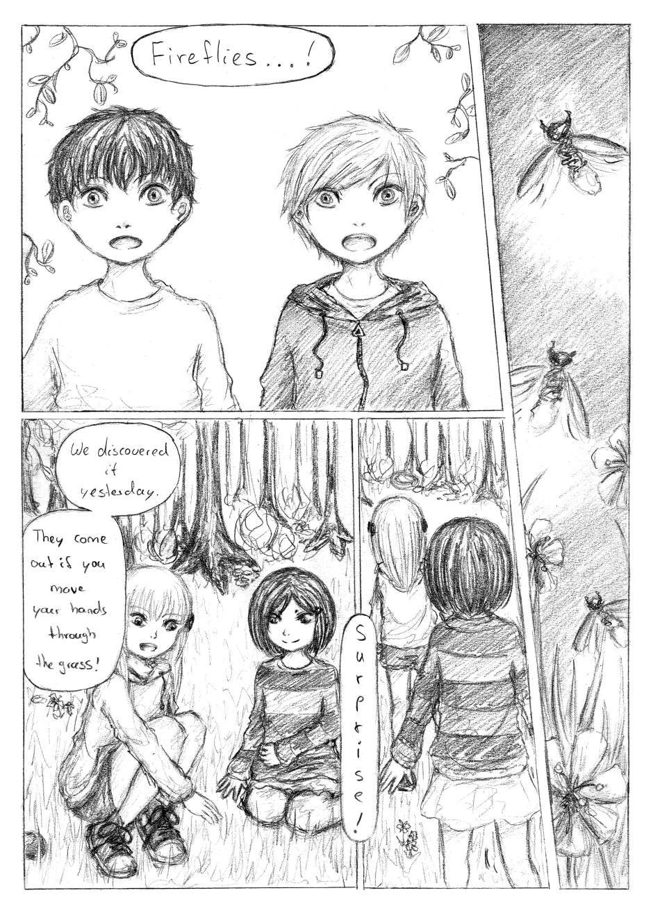 Lit Up Memories centers around four friends, Ichiko, Chinatsu, Hiroshi & Shiro on their class trip to Kyoto, who are 12 years old and in the 1st Year of Junior High. During their last night of the trip, they are reminded of their memories together, how their friendship began and what they will always cherish.
