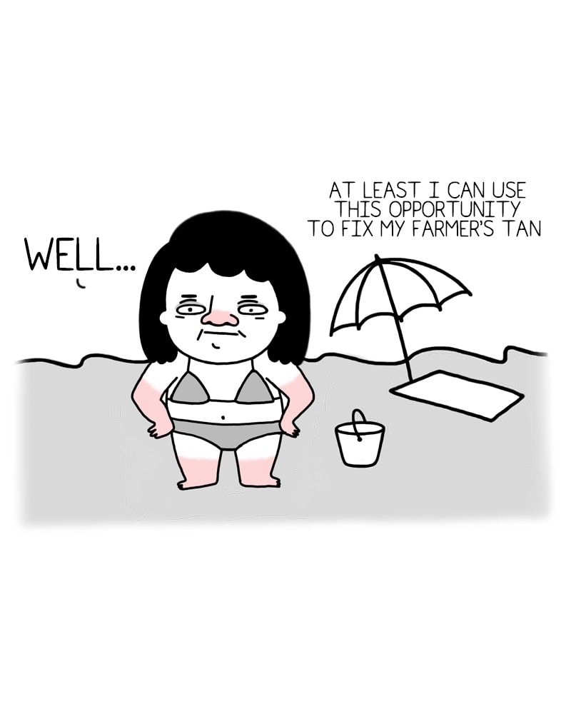 I've been to the beach once this year so ... not much time to fix my farmers tan. :P I didn't know it was called that but I love the sound of it!