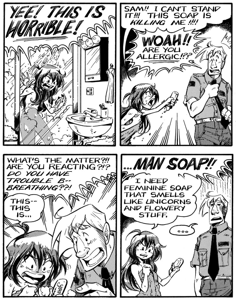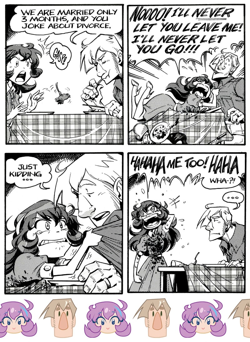 Welcome to my Comic strip 'in SECURITY'. This comic originally is published daily (Mo-Sat). What you see here is the webcomic version in which I combined several daily strips together in one chapter. This episode is meant to introduce you the two lead characters, the mature and low key Sam and his hot headed shorty wife Sedine. I hope you enjoy it :)