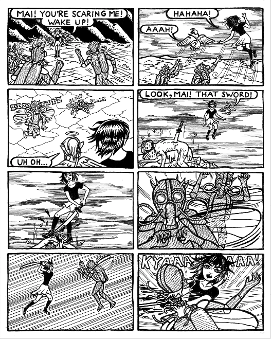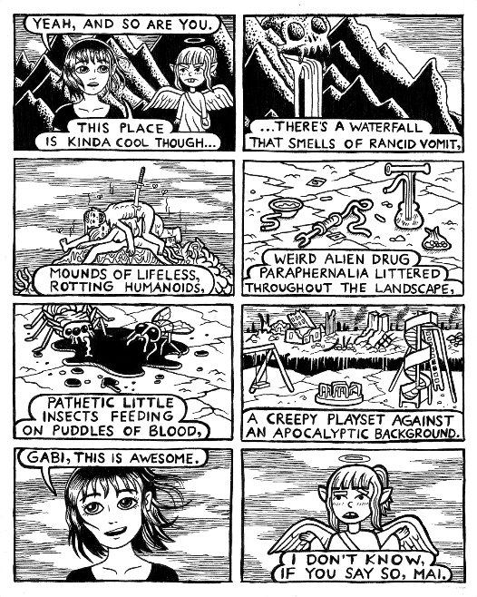 Mai is sad. She's forced to attend a strict Catholic high school, but God forbid, she's a sinful, queer, stoner girl with a dark mind. Flanked by her guardian angel, Gabi, she finds herself on a journey where she must face her looming depression and the conflicting concept of God. (20 pages + blue card stock cover)