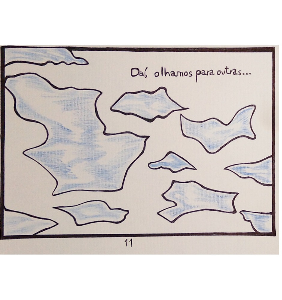 Olhar para o céus e enxergar formas nas nuvens, alem de notar elas se dissipando.