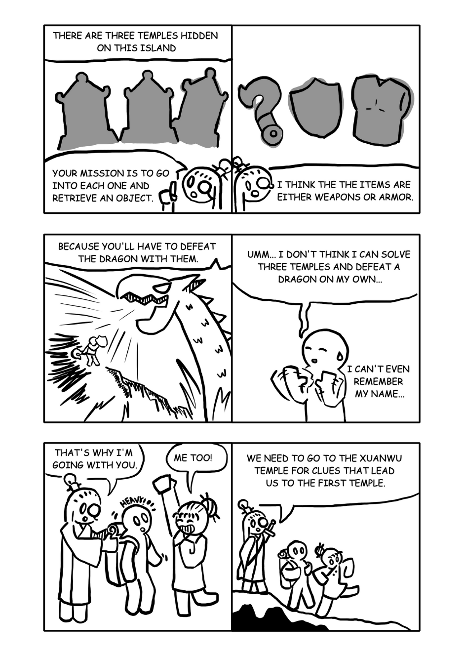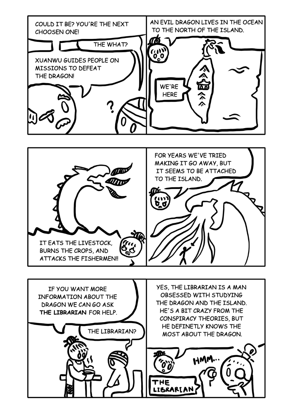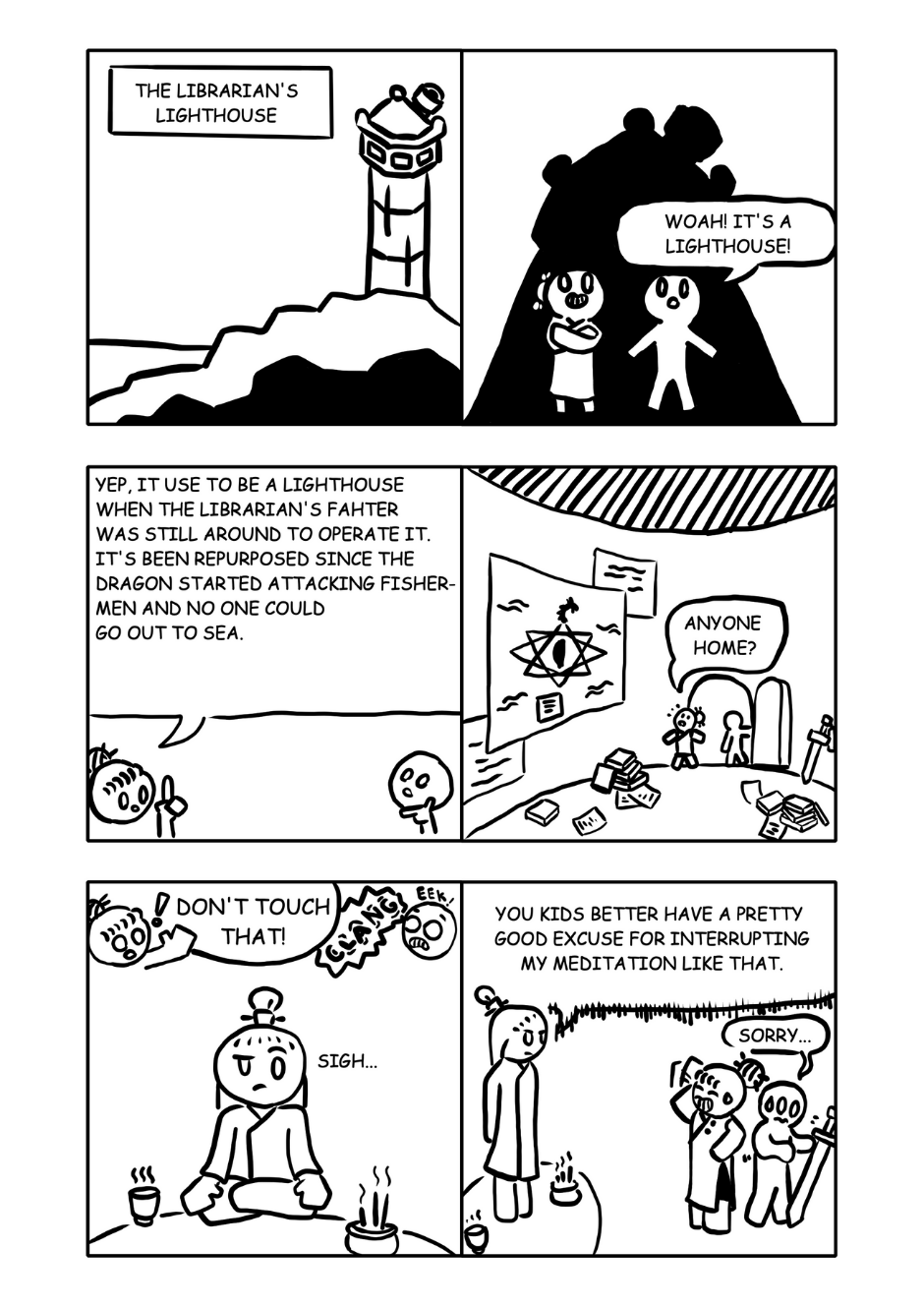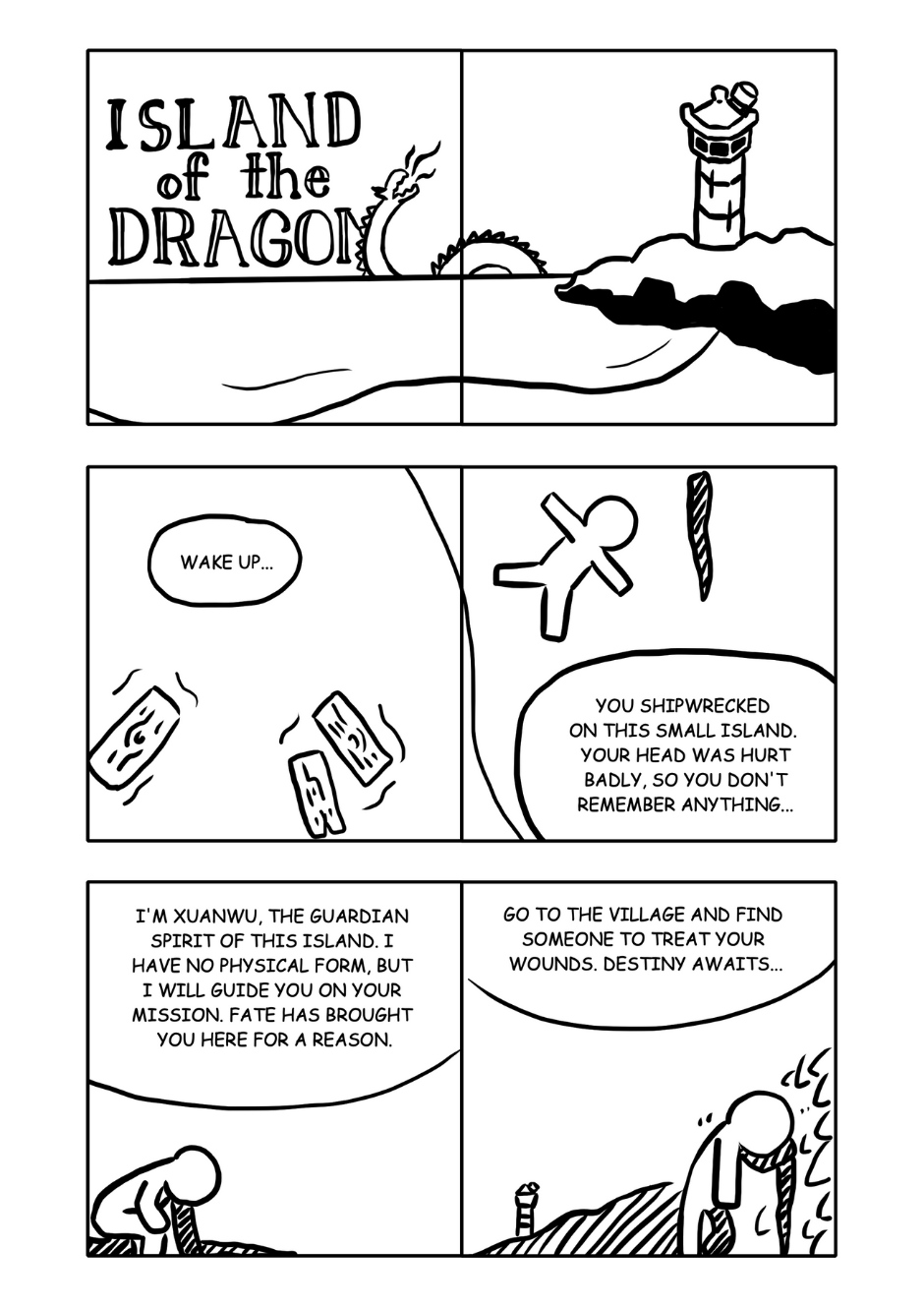 The hero wakes gets woken up by a mysterious spirit and embarks on his journey to uncover the island's secrets and defeat the dragon.
