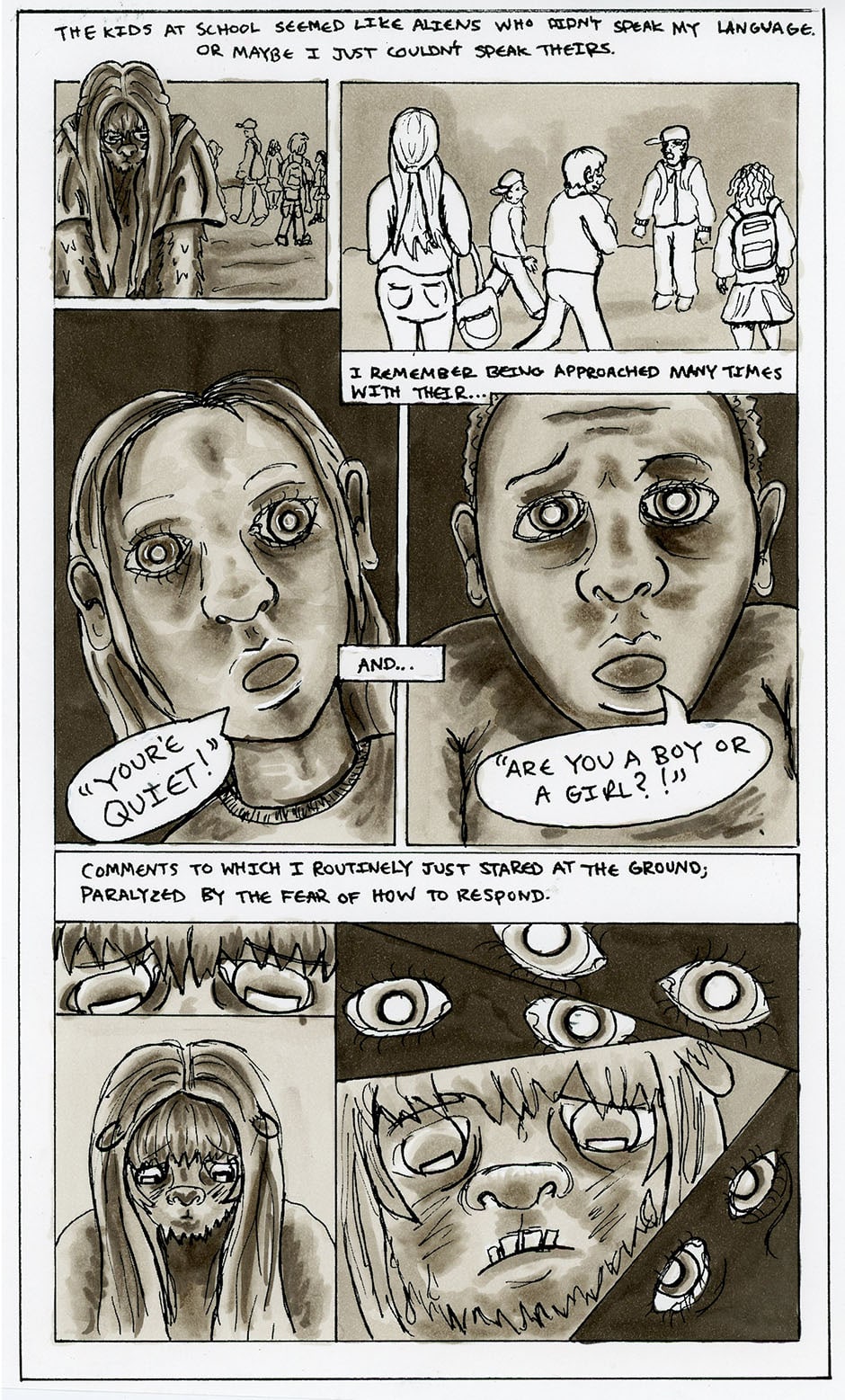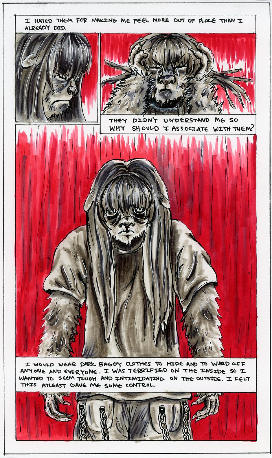 This comic is my therapy for coping with my sheltered and dysfunctional upbringing. It reflects my struggles with emotional issues like social anxiety and not fitting in with the norms. By sharing my story I hope to connect with others and for it to serve as some sort of comfort to those who can relate.