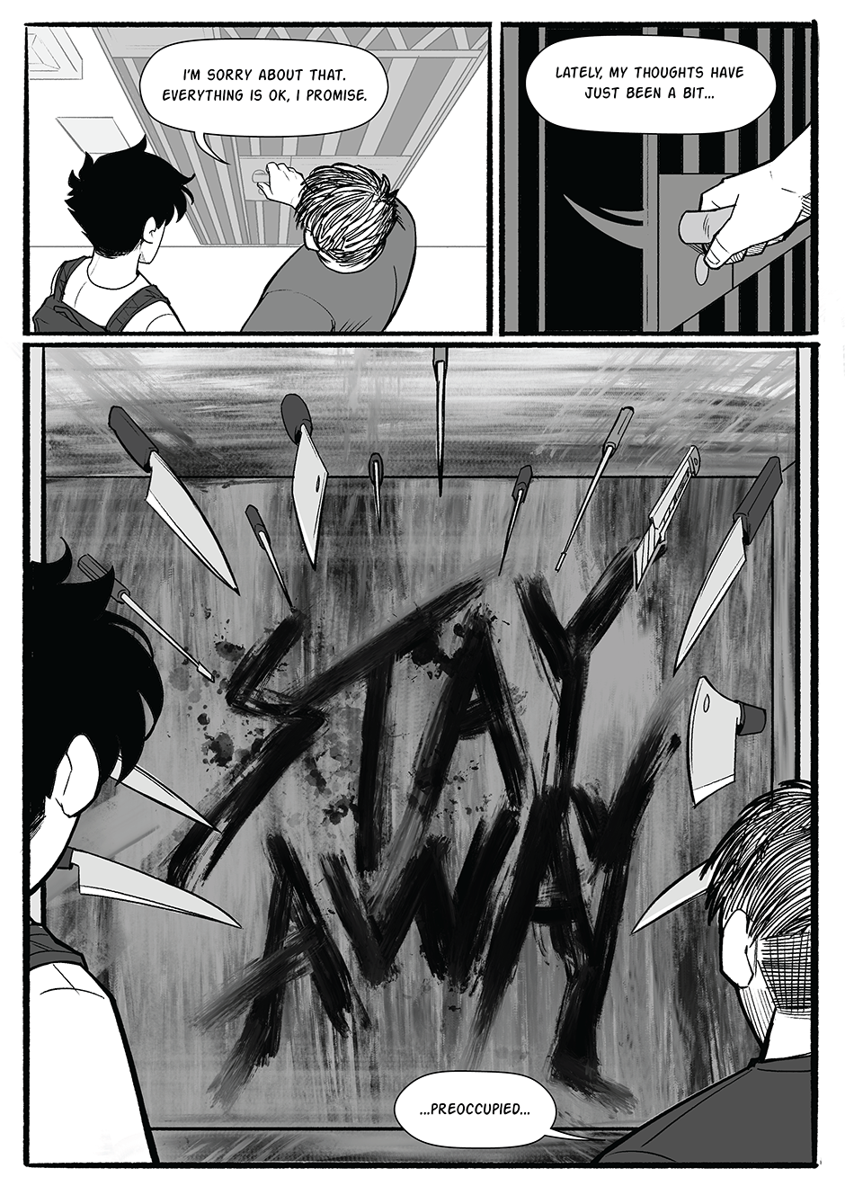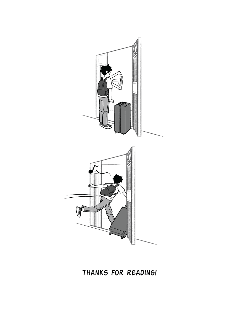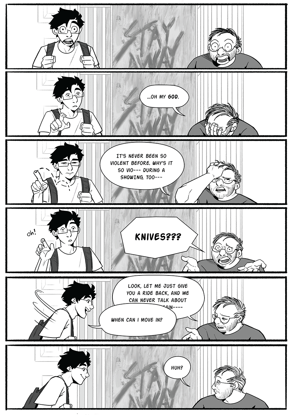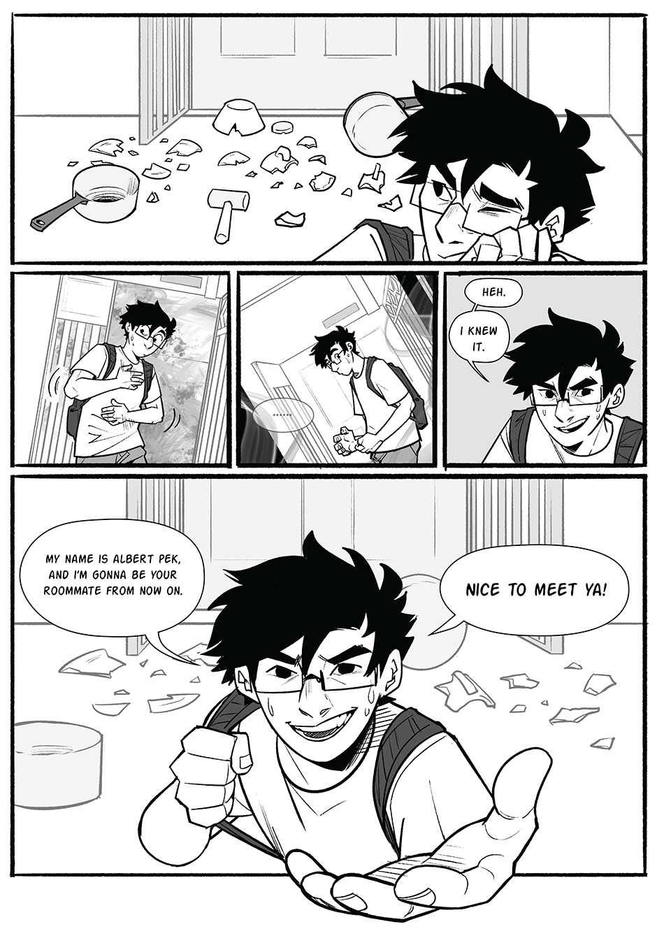 Oooh is he gonna have a ghost roomie? That would be very interesting but like does he have a death wish? Also your art is so good like wow. I’m inspired to make my own comic now!
