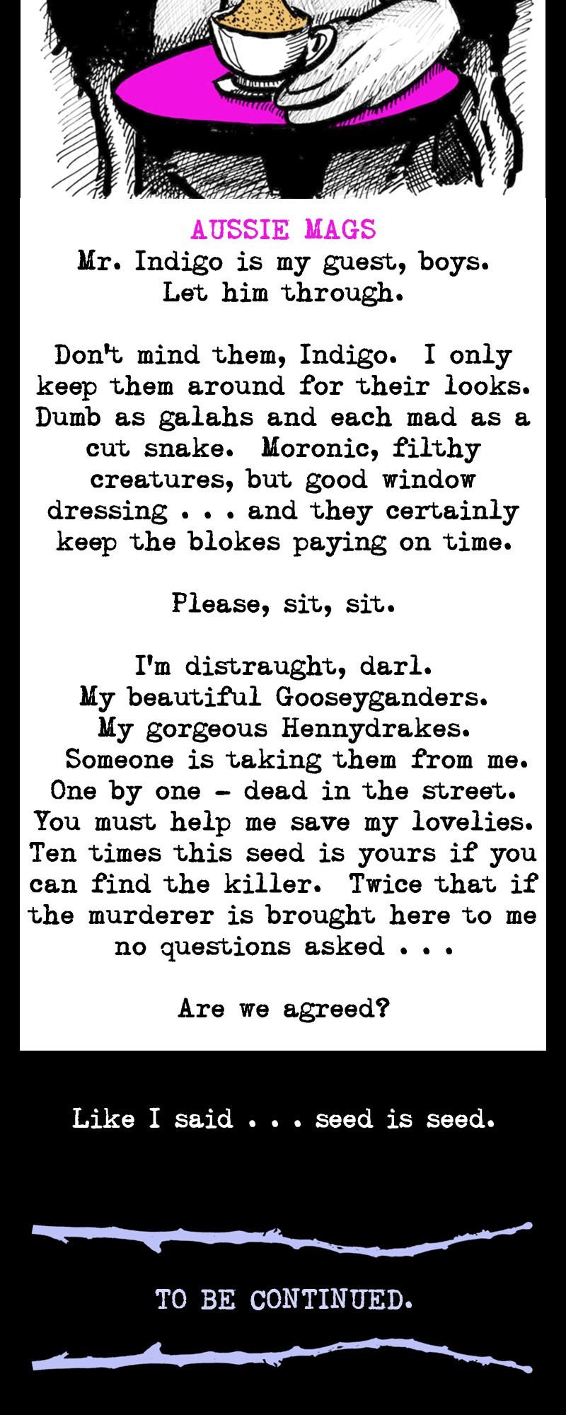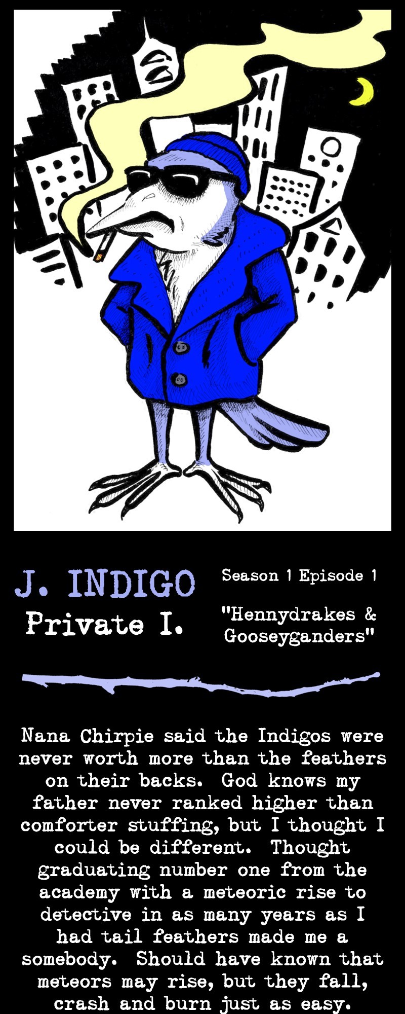 Flying the straight and narrow isn't easy, and no bird knows that better than J. Indigo, Private I. When you're washed up, wrung out, and have only ever been good at "one damn thing" in your whole life, you can't help doing just that . . . for anyone who can afford to pay the bill. After all, "a job's a job and seed is seed." Written and Produced by The Nelson Brothers [USA and Japan] -- NEW EPISODE[S] RELEASED EACH MONTH!