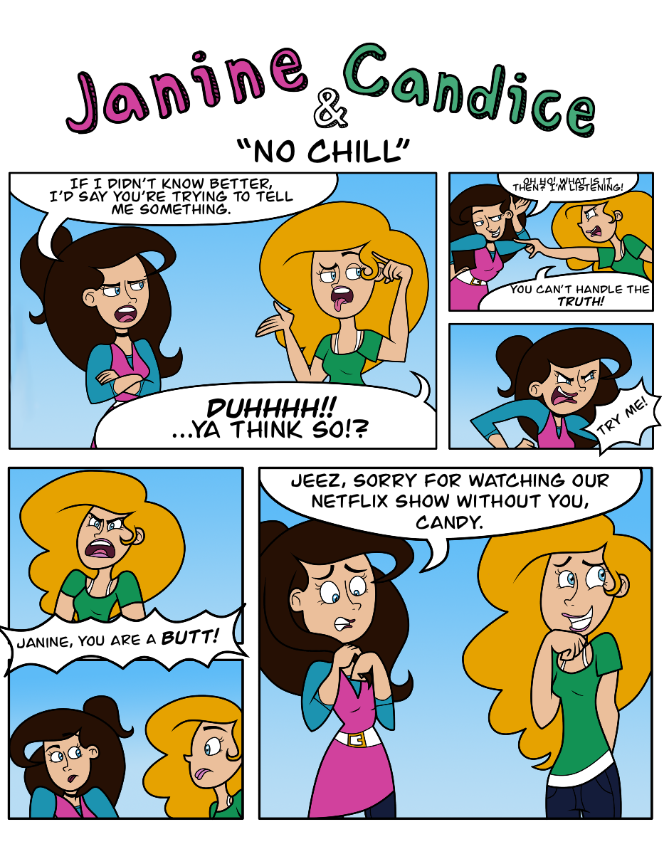Welcome! This is the first comic I made with an old friend back in 2012. I retooled the original dialogue (the original was bleh). Since this comic, Janine and Candice have grown into their own and have been a fun project I’ve continued over the years. Thanks for reading!