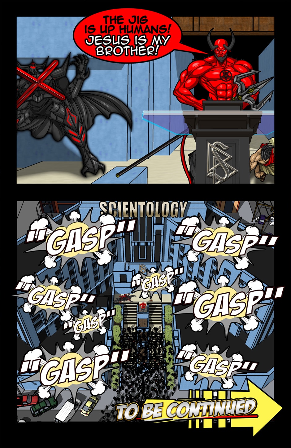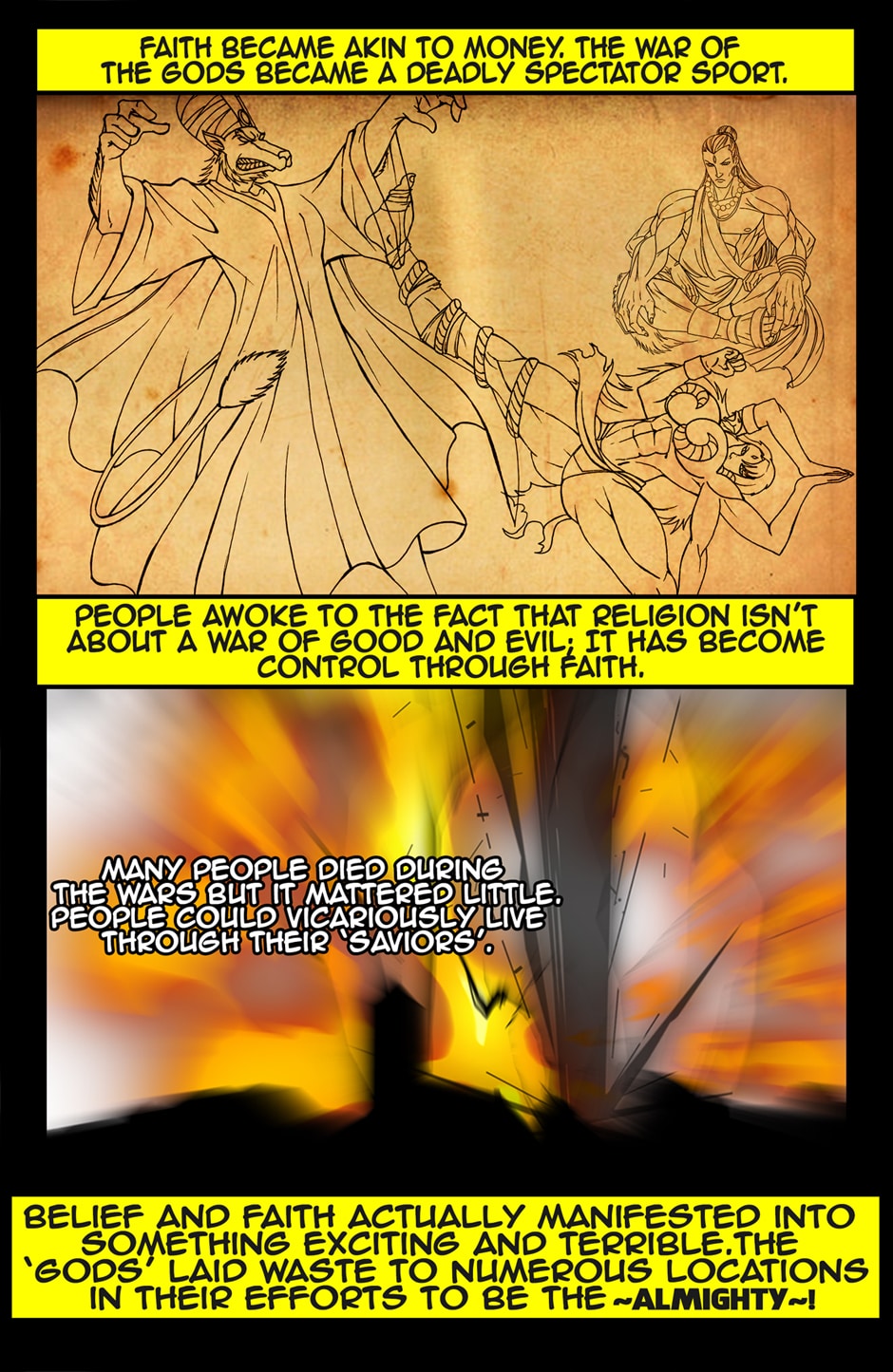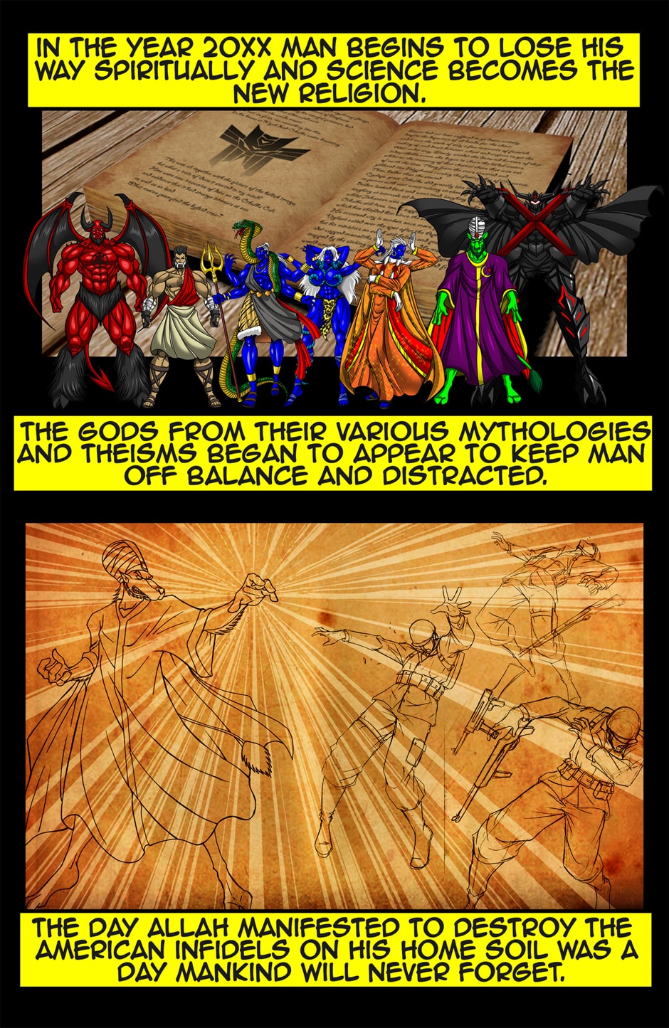 It's time to smash religion! Forget all this fake and boring Christian Crusader nonsense and go for religion's jugular. It's an all out war between the modern day gods. See how petty, pathetic, and mercurial they really are! If you hate religion and want to see it obliterated then this is the comic for you. Let's get our revenge and make a mockery of these commercial enterprises! Let us prey!