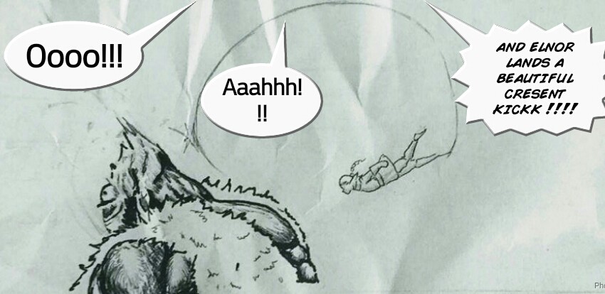 This is a snippet of one of the fights that will happen in the tournament. Elnor {the elf} is one of the main characters in the comic .