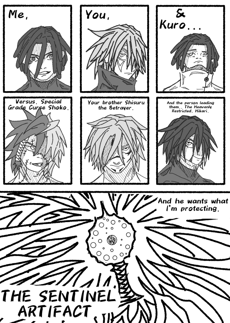 Several generations after the great battle in with the King Of Curses, our hero sorcerers from the modern era have passed away with the times. Their cursed techniques have been passed down to the next generation of sorcerers. Followers of Suguru Geto A.K.A Kenjaku, have been trying to obtain a *Sentinel Artifact from the modern era.. It holds the power of Tengen, the ability to start the merger! Can the Current Sorcerers Of JuJutsu Tech prevent the calamity? Has the cycle of curses truly ended.. or is it really a never ending cycle of Sorcerers Vs Curses?