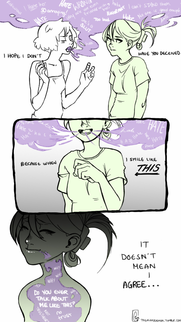 Just a thought about how some of my friendships of ended, and I how I fear they'll end. I just don't really like it when people start complaining to me about our mutual friends :/ But I don't hate them. Hate is a strong word.