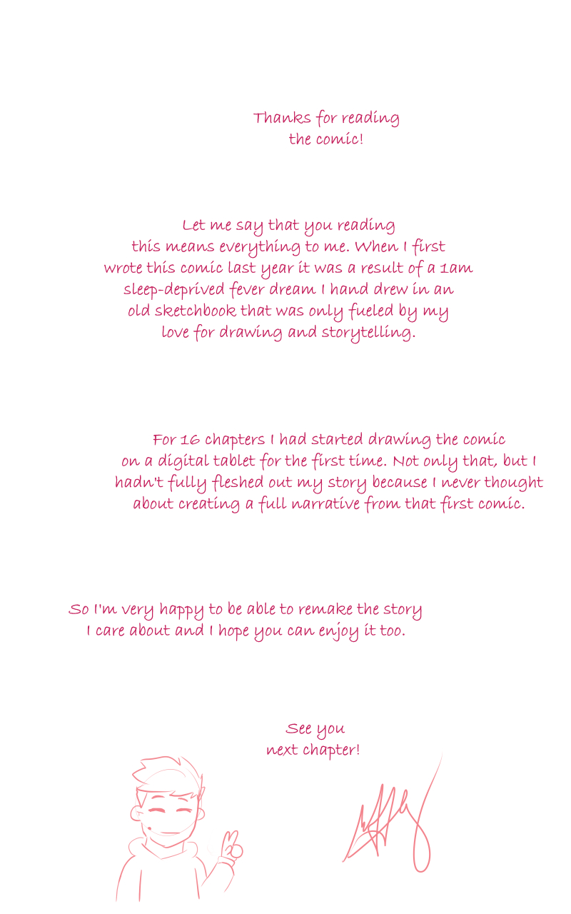 Hello!~ This is the remake I made in 2019 after I started college. I'll be posting the chapters here every couple week until I've fully caught up with the Webtoons version.