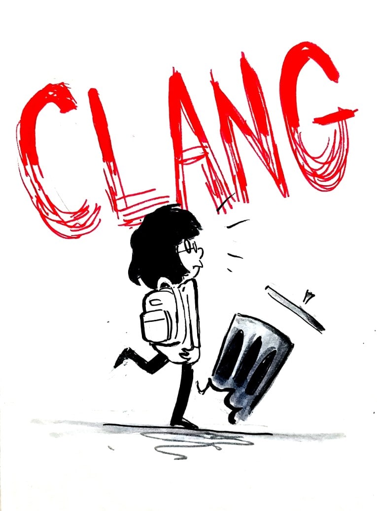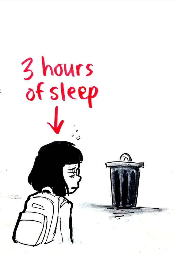 In this one, I'm both the sleep-deprived student AND the trash can