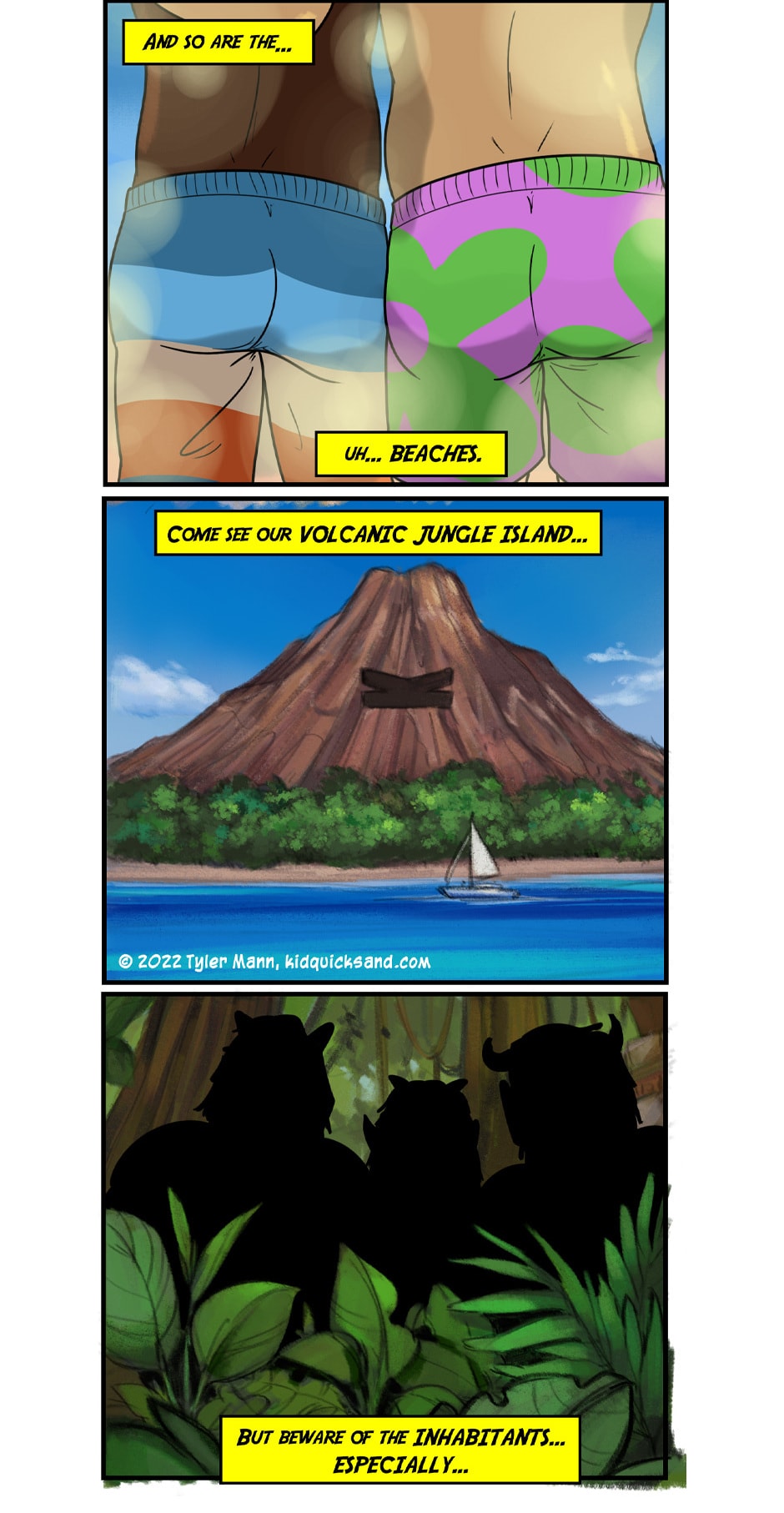 This is the world of Kid Quicksand! A beautiful beachside city featuring a boardwalk, attractions, shopping district, main street, and the mysterious volcanic jungle island looming over the beach!