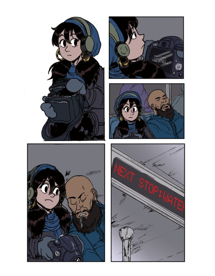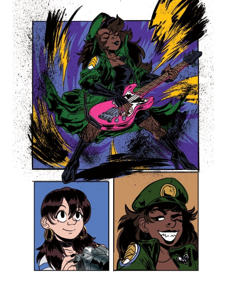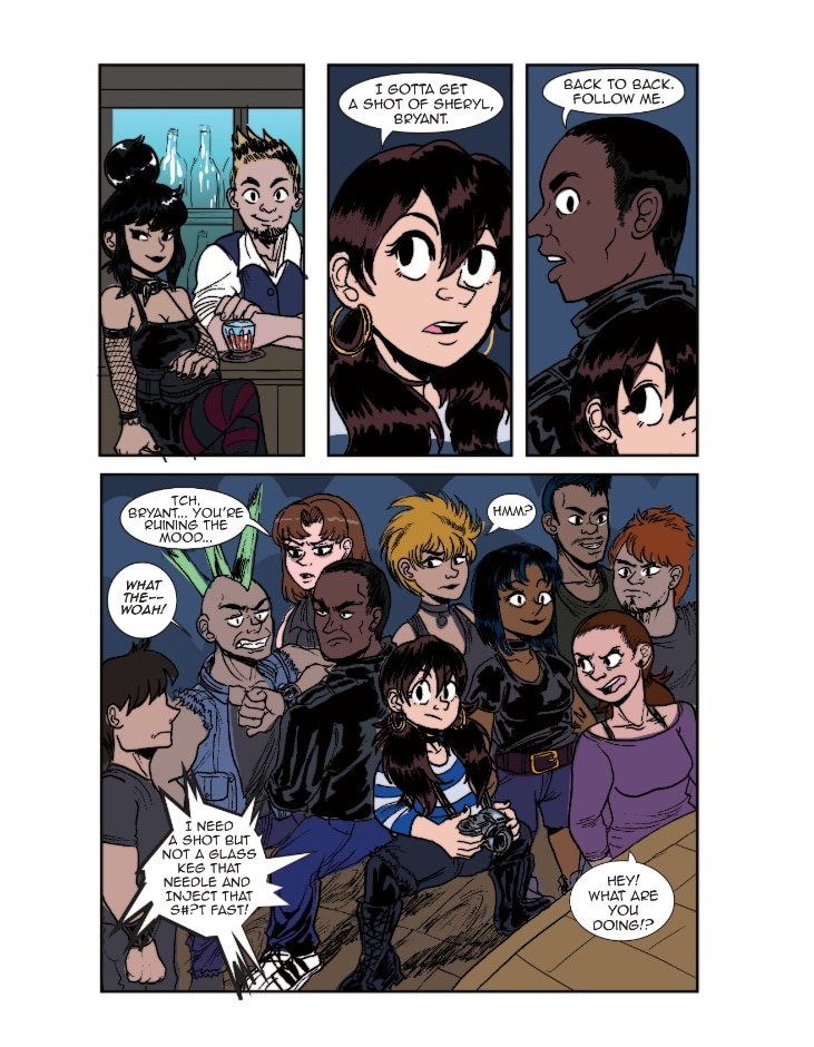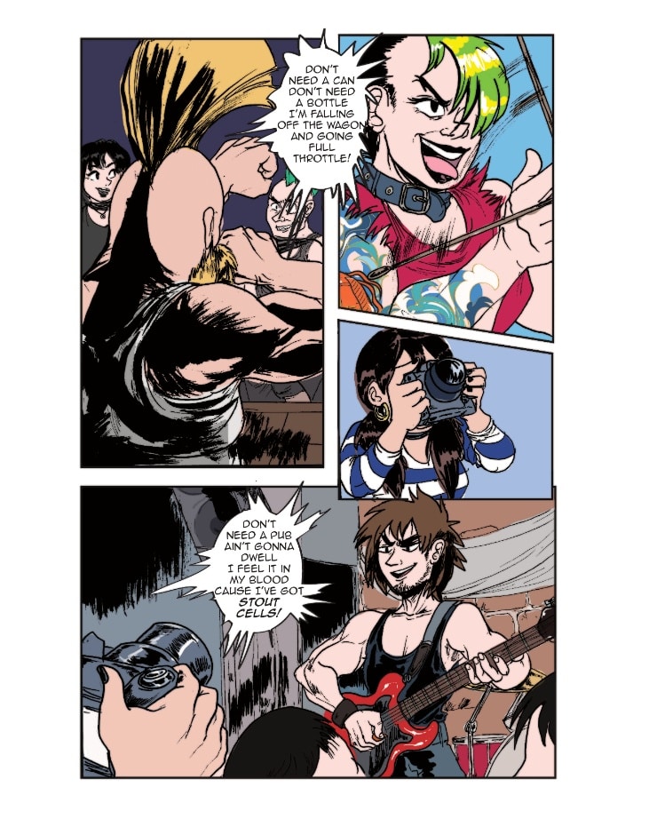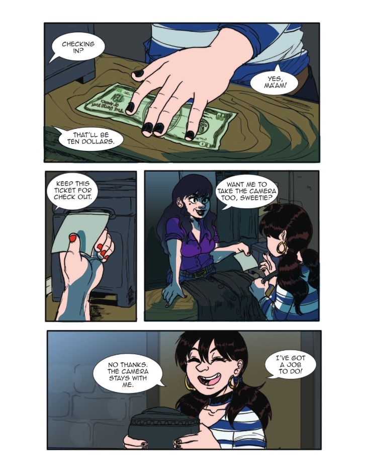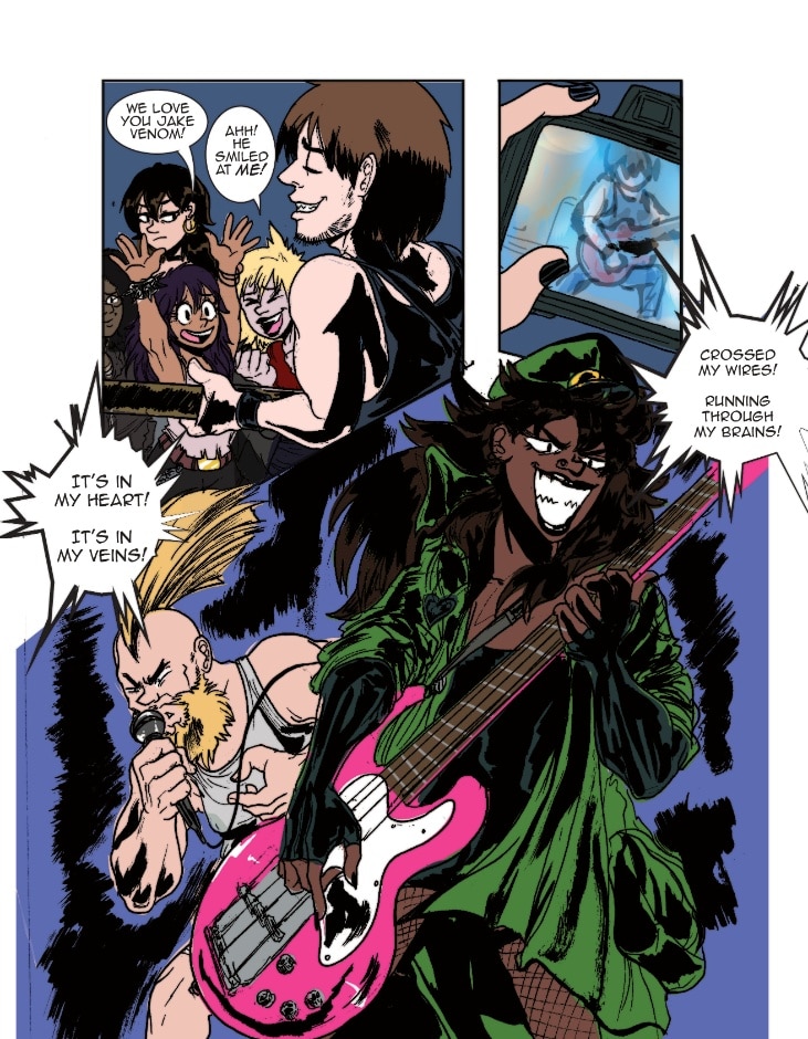 Loop is at a show where The Daphnes are headlining. She snaps a lot of great photos of the band while they’re playing. It's a good thing that Bryant was there to watch her back!
