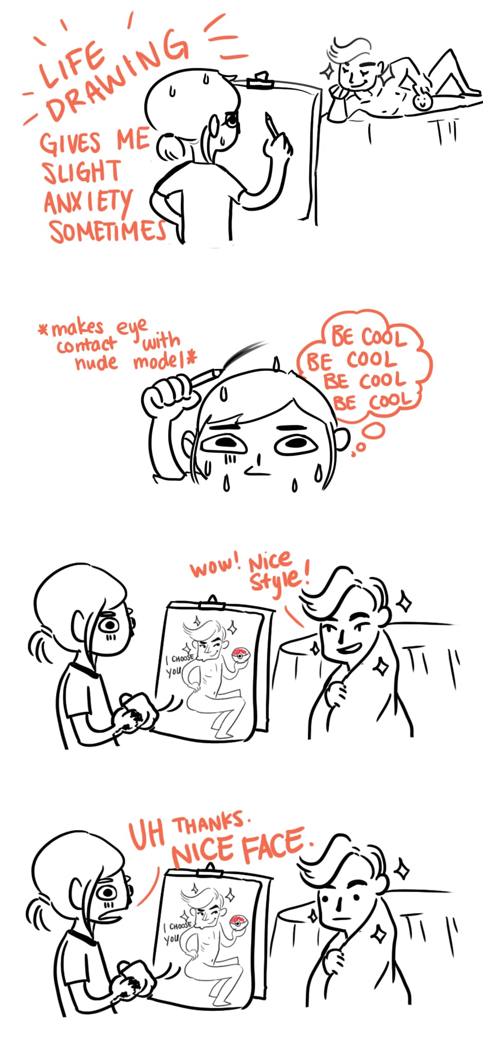 Well you just got done staring at someone in all their glory hell I'd be nervous myself. At least you didn't have a panic attack like I did when I first met my boyfriend DX