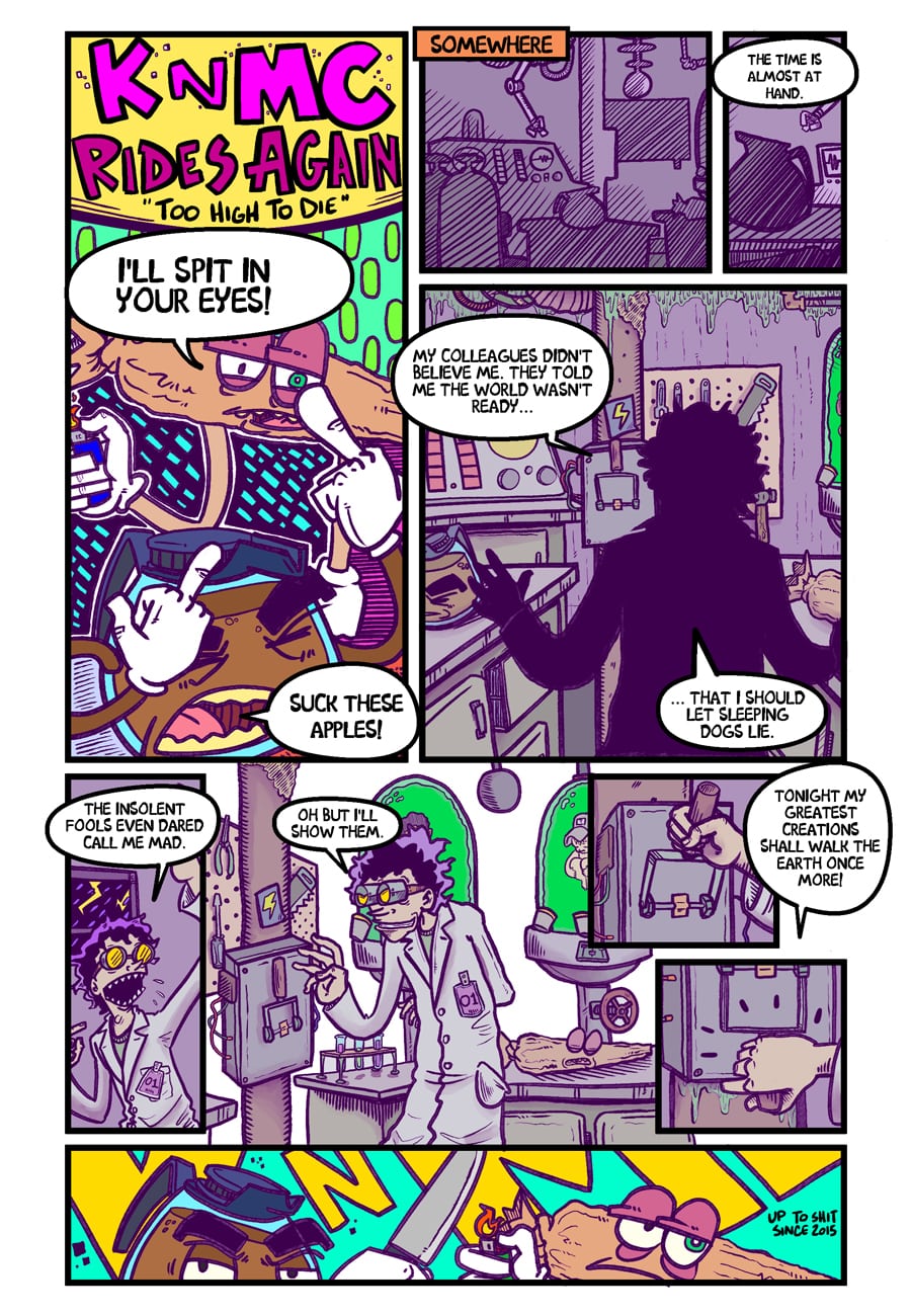 page one of my ten page comic "Too High To Die" starring Koffee and Marijuana Cig!