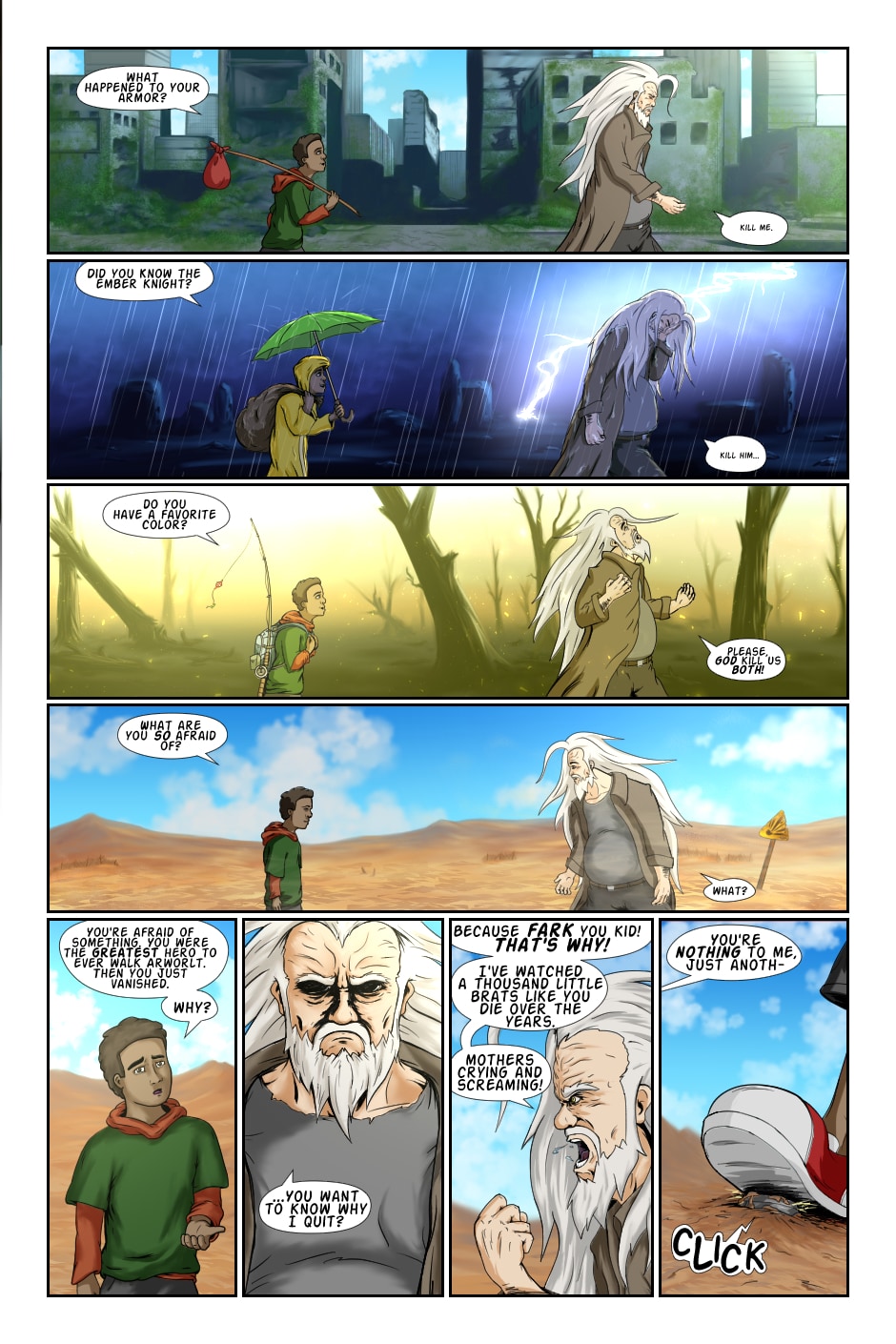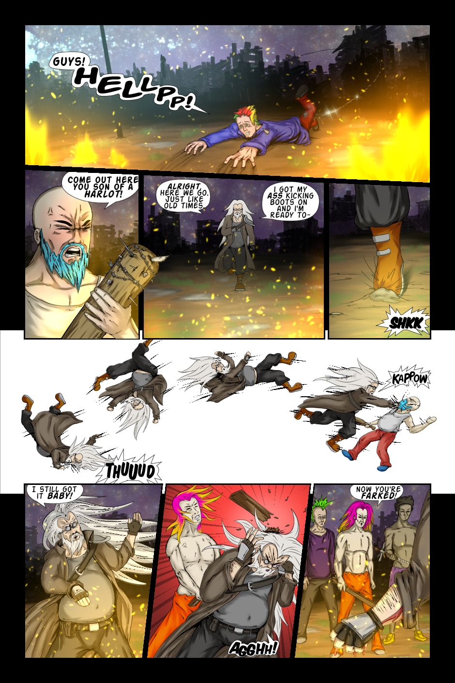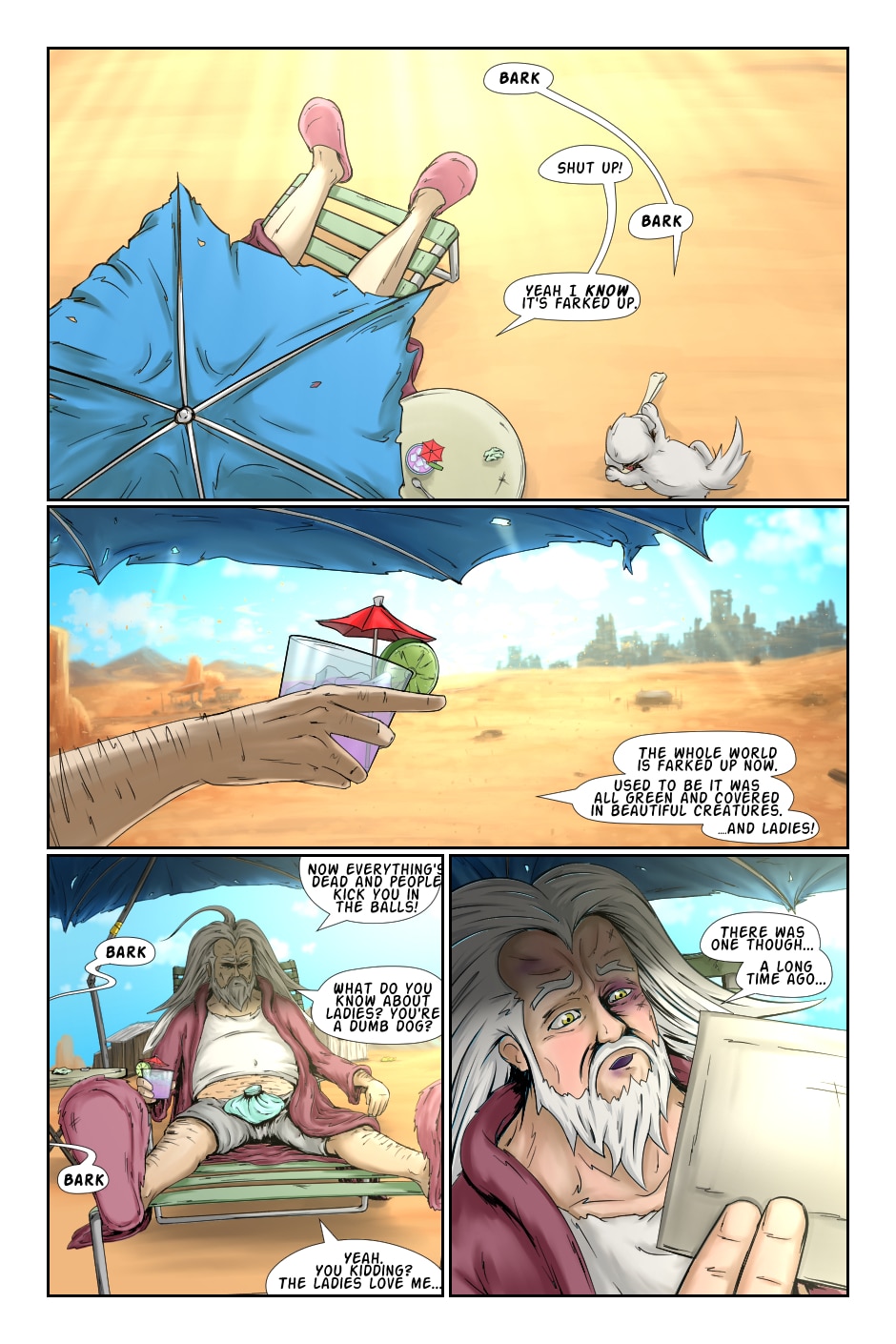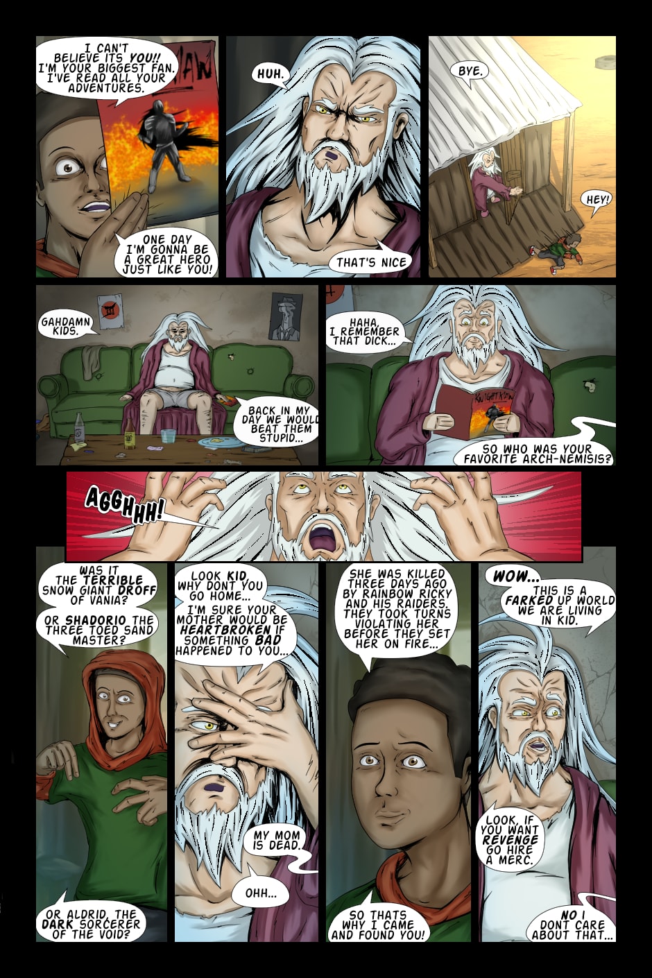 The world has fallen apart! Gangs of raiders rule the land, children are sold into slavery and sheep are raped! An old, degenerate hero is pulled out of his retirement to face a dark, depressing reality that perfectly reflects his "screw it all" attitude.