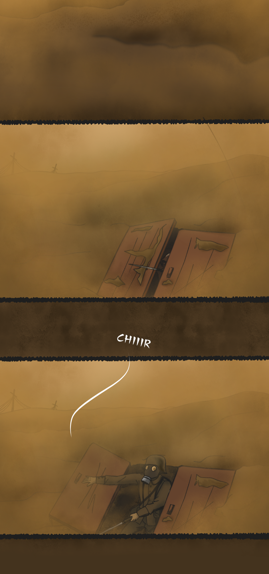La historia comienza después de un bombardeo con Gas Moztaza en Passchendaele (Francia) en Julio de 1917. Un grupo de soldados alemanes intentan huir del frente de batalla hasta que son enfrentados por soldados franceses y solo uno de los alemanes logra escapar con vida. Se esconde dentro de una casa abandonada para refugiarse del gas mostaza. Sin embargo, escucha un ruido que provenía del sótano y no duda en enfrentarse al dueño de ese sonido.